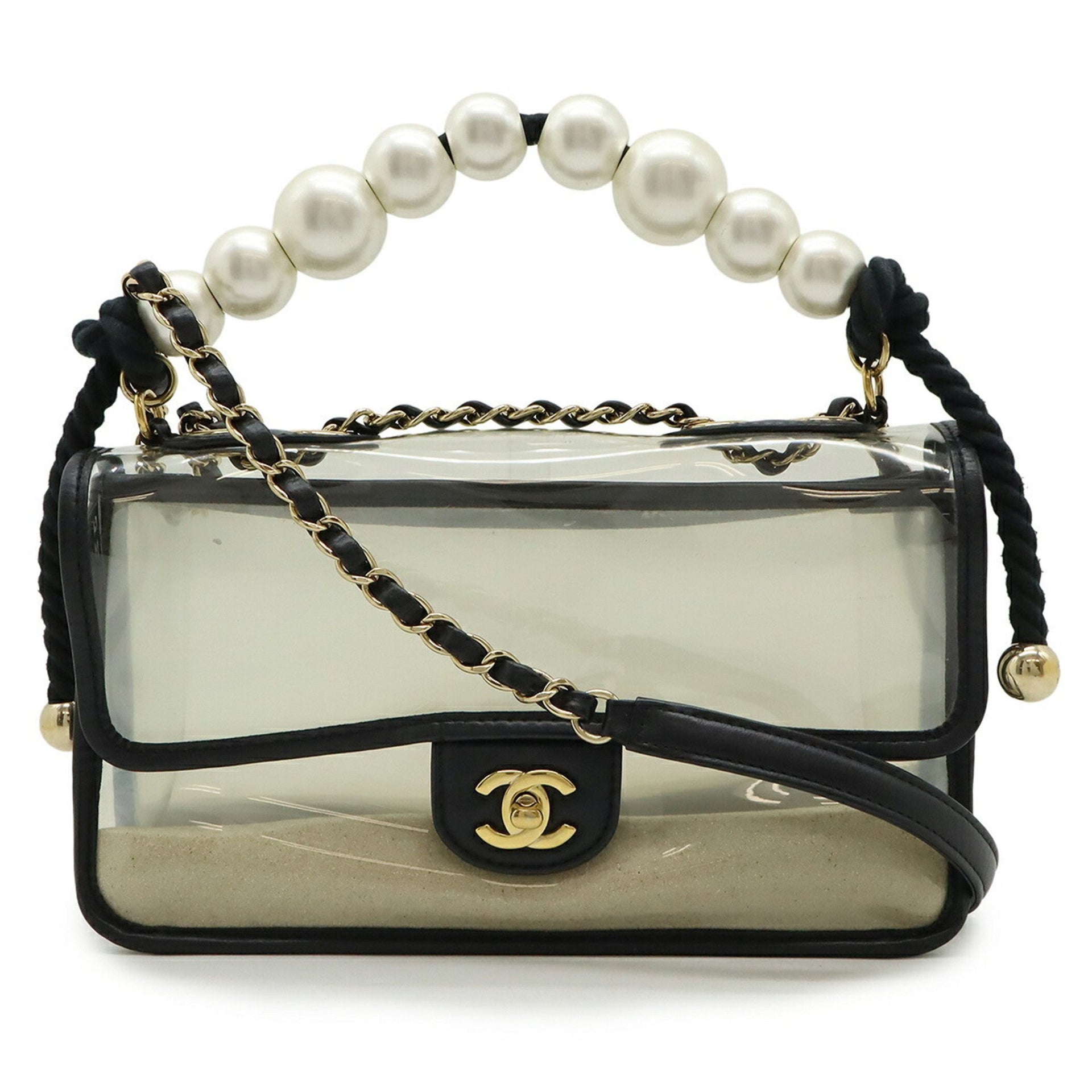 CHANEL Coco Mark Chain Shoulder Bag Handbag in Vinyl, Faux Pearl, Sand, Lambskin, Clear, Black
