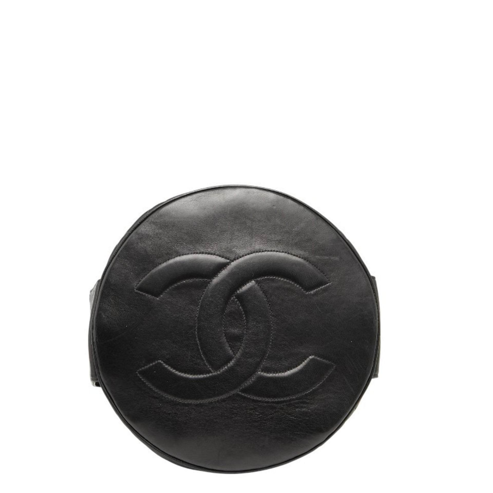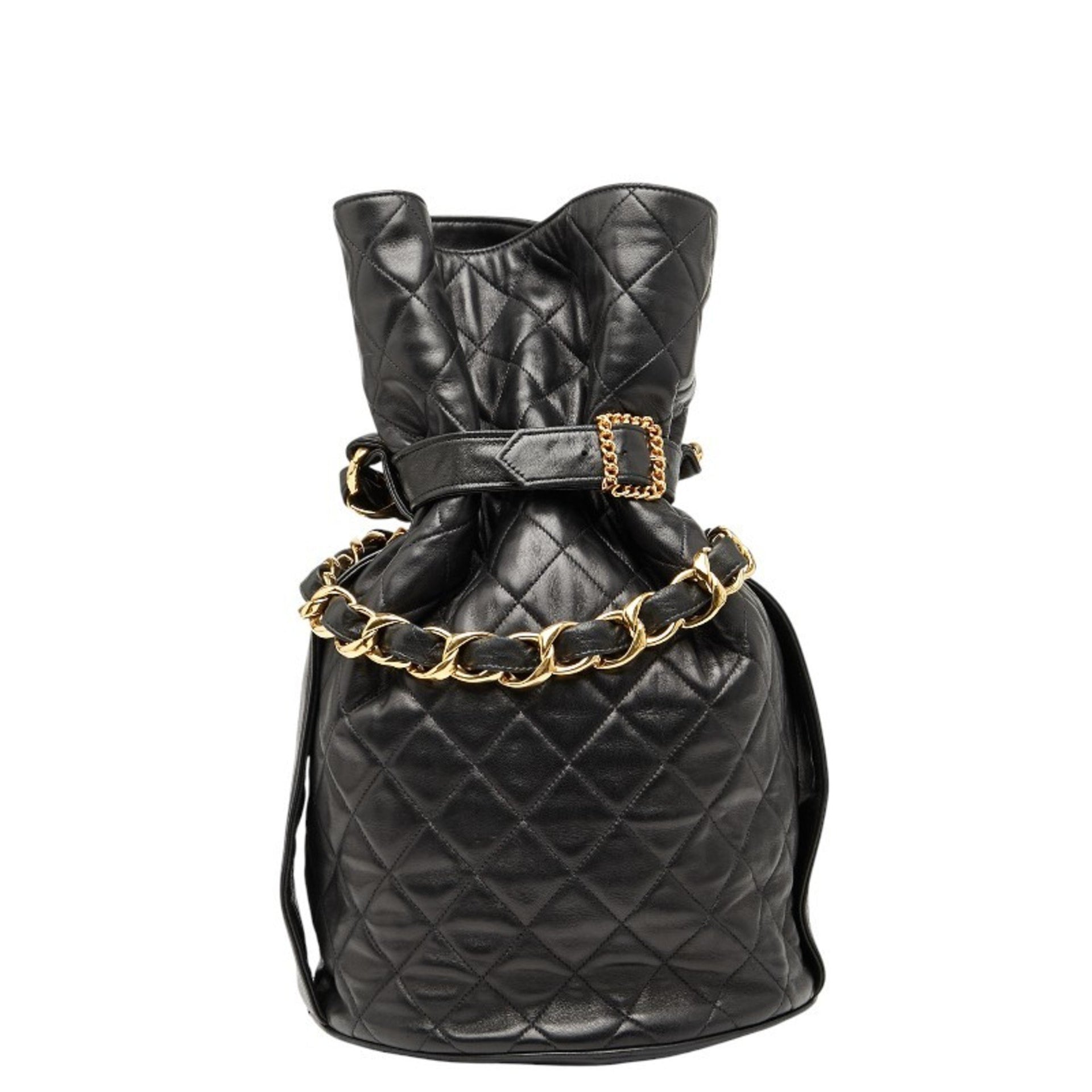 CHANEL Coco Mark Matelasse Drawstring Chain Shoulder Bag in Black Lambskin for Women
