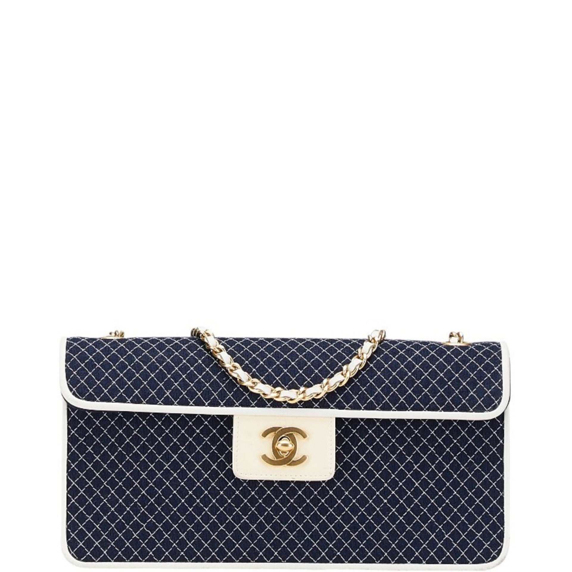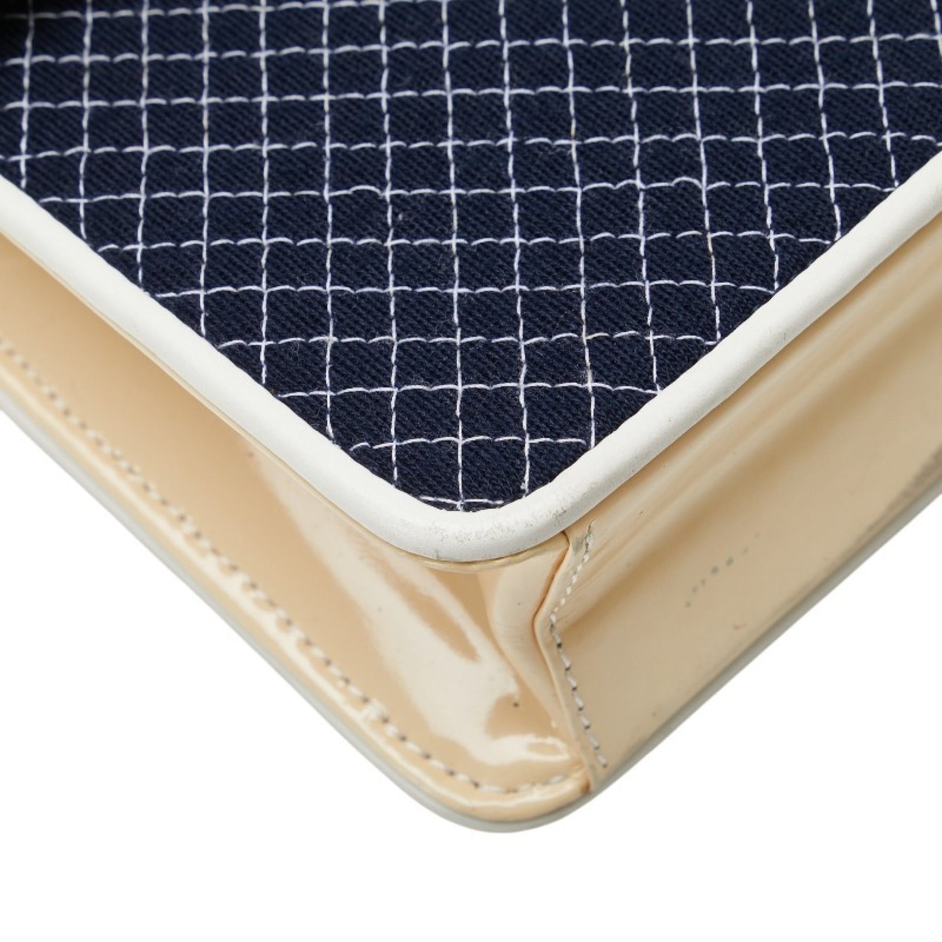 Chanel Coco Mark Quilted Chain Mini Shoulder Bag in Navy and White Canvas Patent Leather. Women\'s.