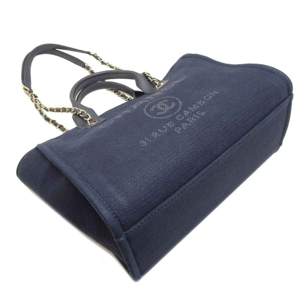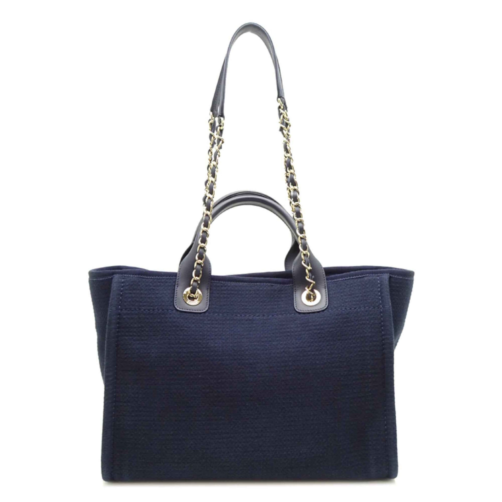 Chanel Deauville Chain Tote Shoulder Bag AS3257, Canvas, Navy