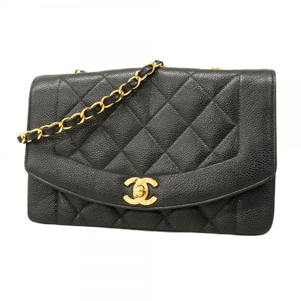 Chanel Diana Matelasse Chain Shoulder Bag in Caviar Skin, Black, Women\'s