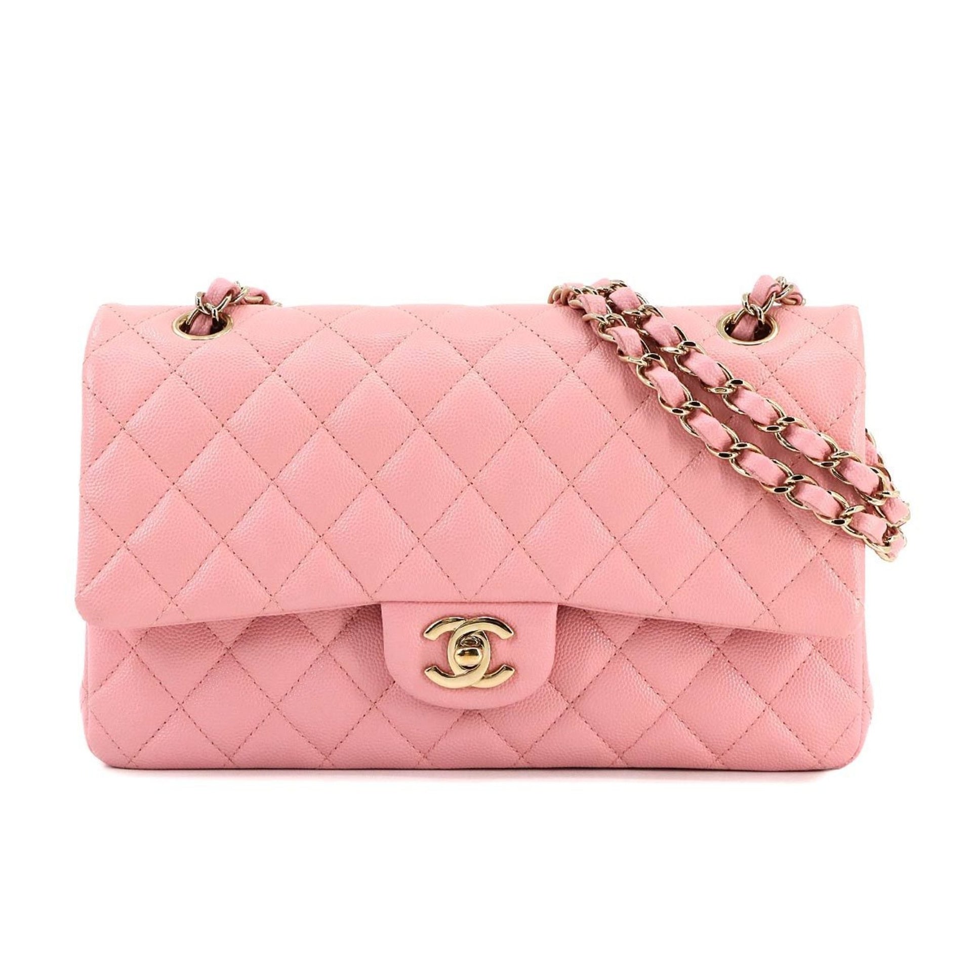CHANEL Matelasse 25 Chain Shoulder Bag in Pink Caviar Leather with Gold Hardware and Coco Mark (A01112)