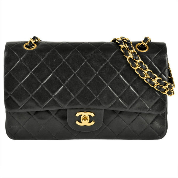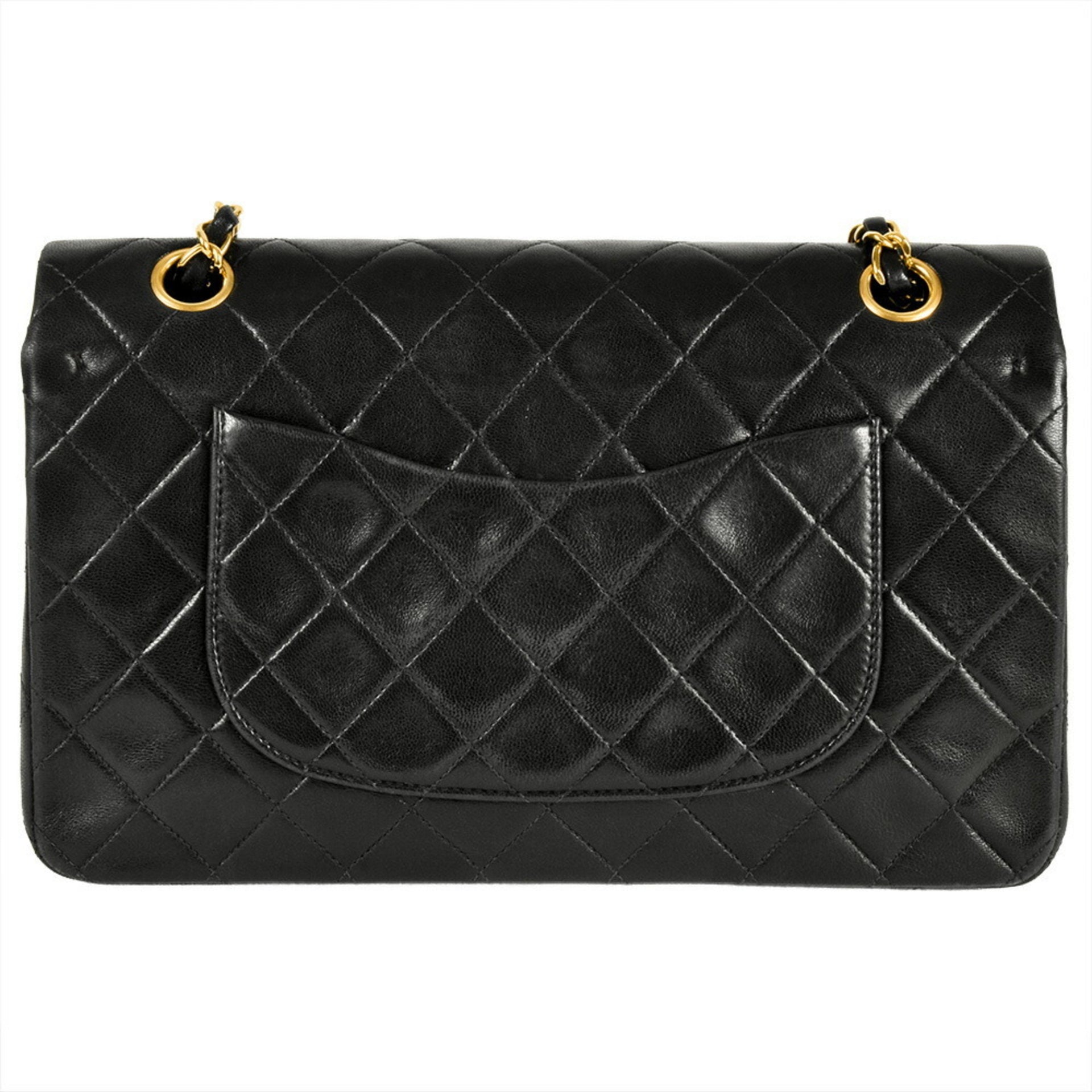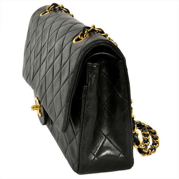 CHANEL Matelasse 25 Double Flap Chain Shoulder Bag Lambskin Black Coco Mark Women\'s