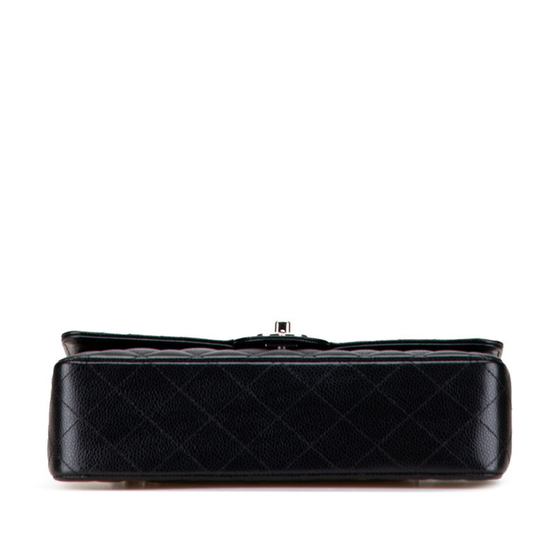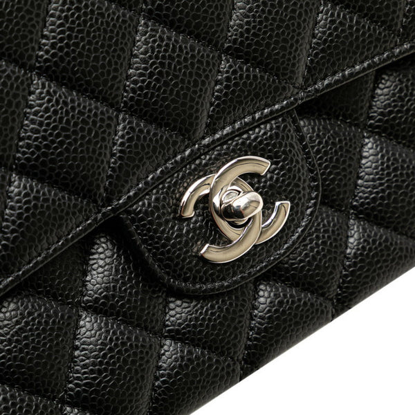 CHANEL Matelasse Coco Mark Double Flap Chain Shoulder Bag Handbag in Black and Silver Caviar Skin for Women