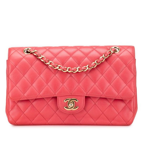 CHANEL Matelasse Coco Mark Double Flap Chain Shoulder Bag Handbag Pink Caviar Skin Women\'s