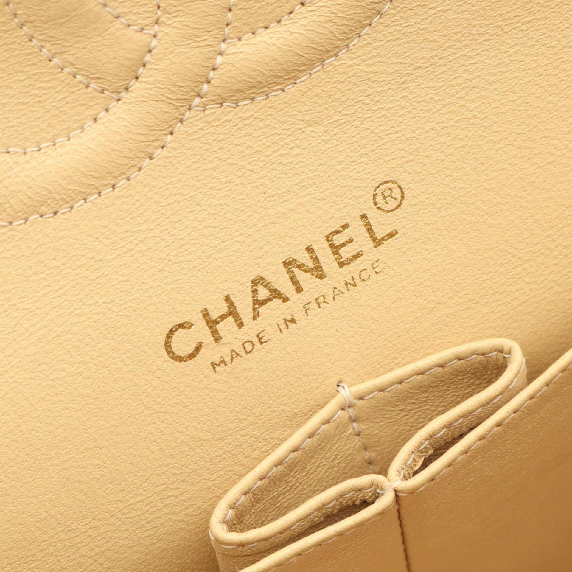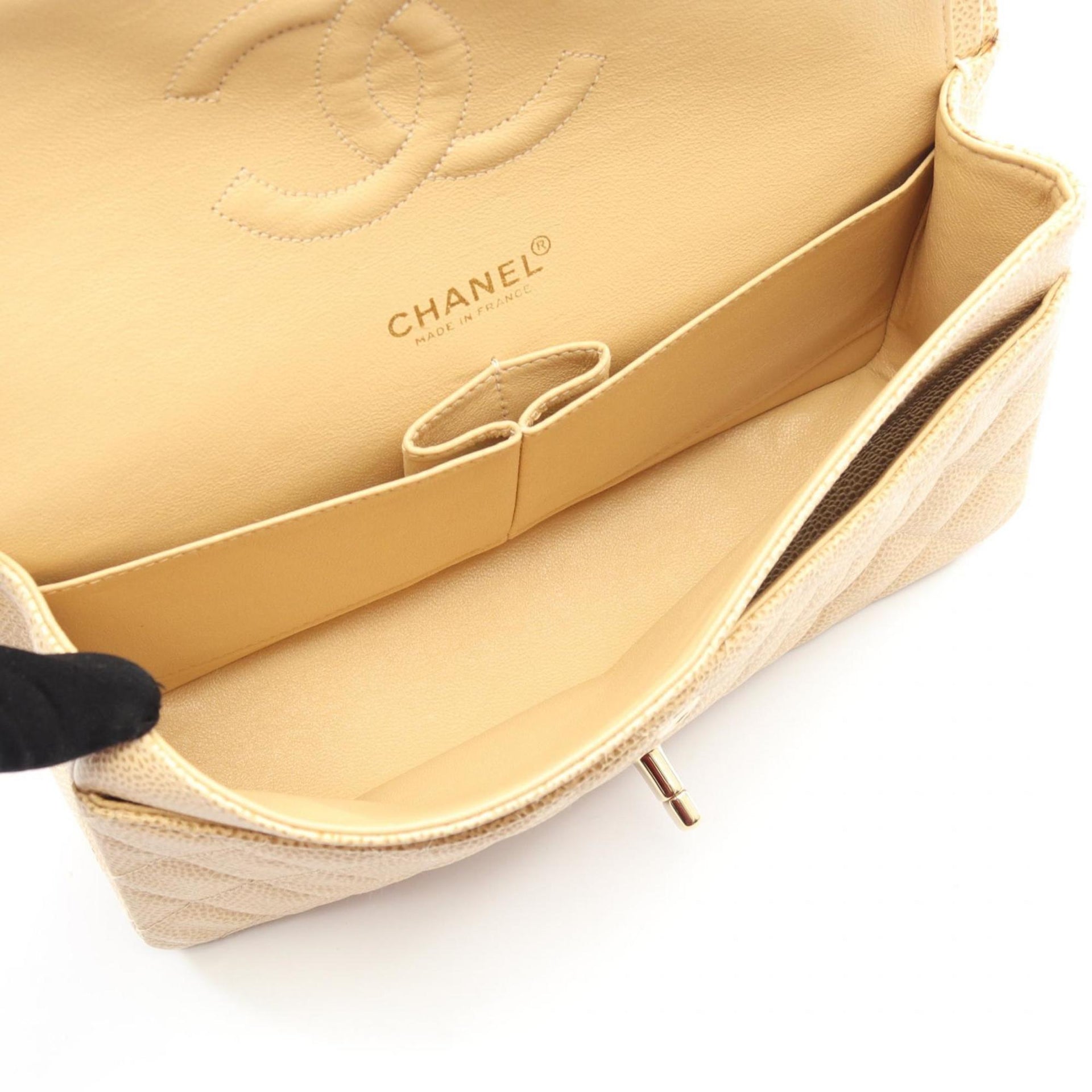 CHANEL Matelasse Double Flap Shoulder Bag in Grained Calfskin Caviar, Beige, A01112