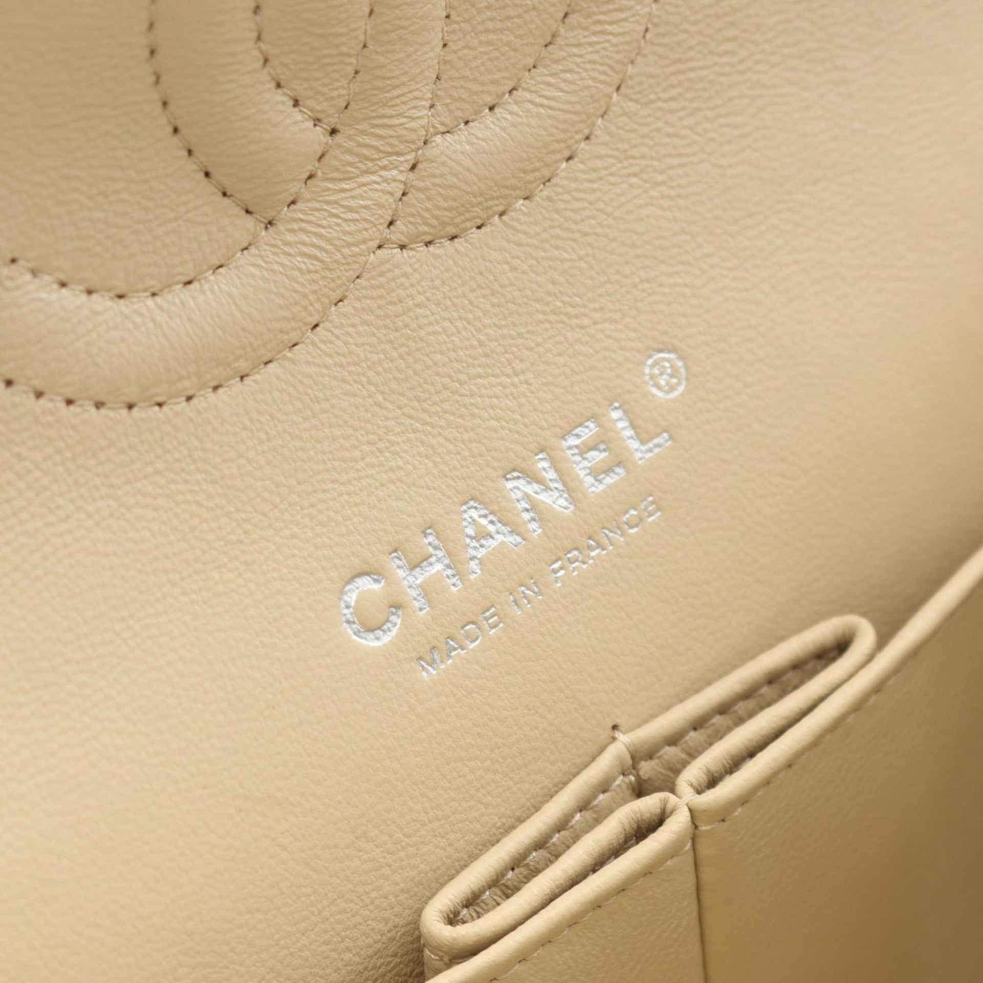 CHANEL Matelasse Double Flap Shoulder Bag in Grained Calfskin Leather, Beige, Women\'s, A01113