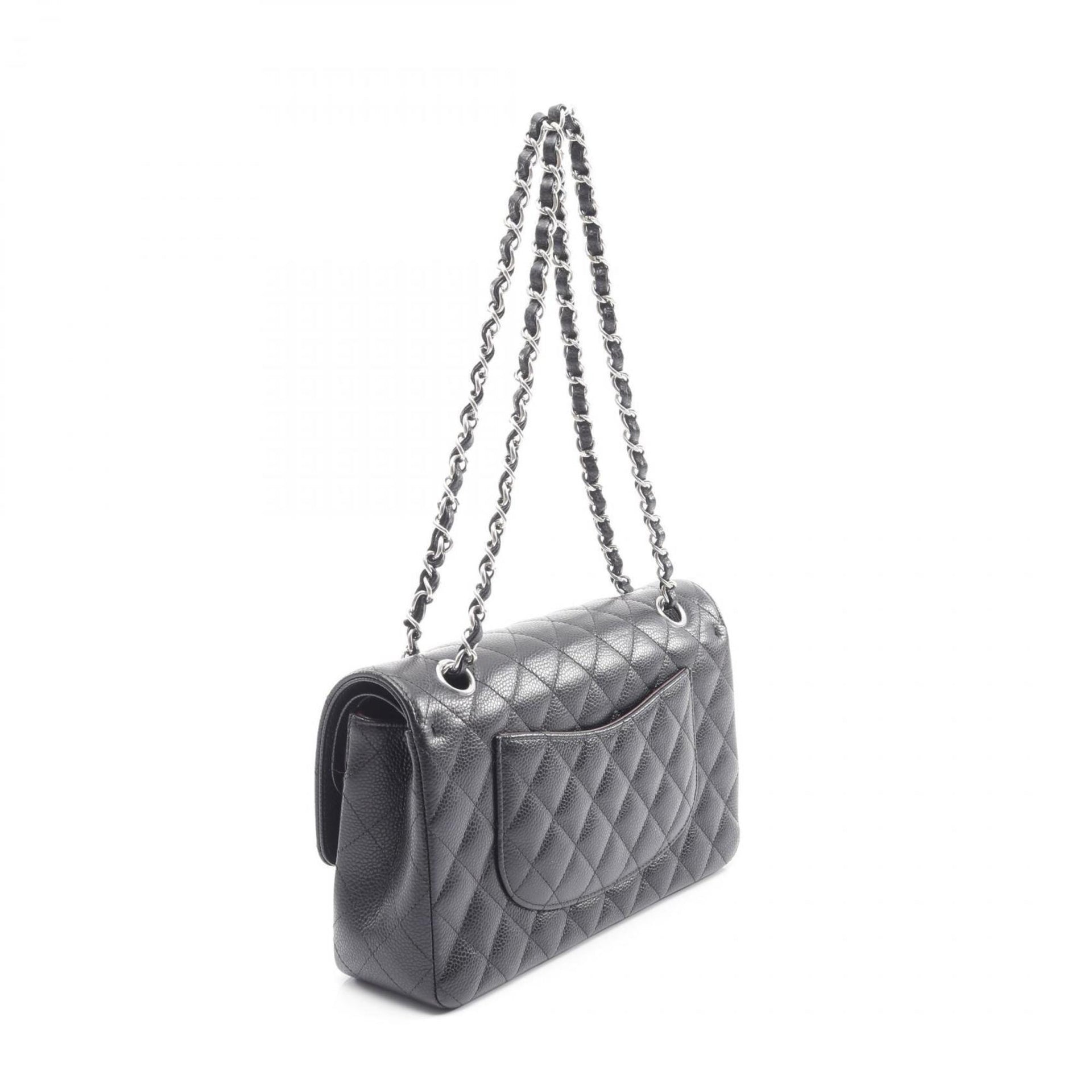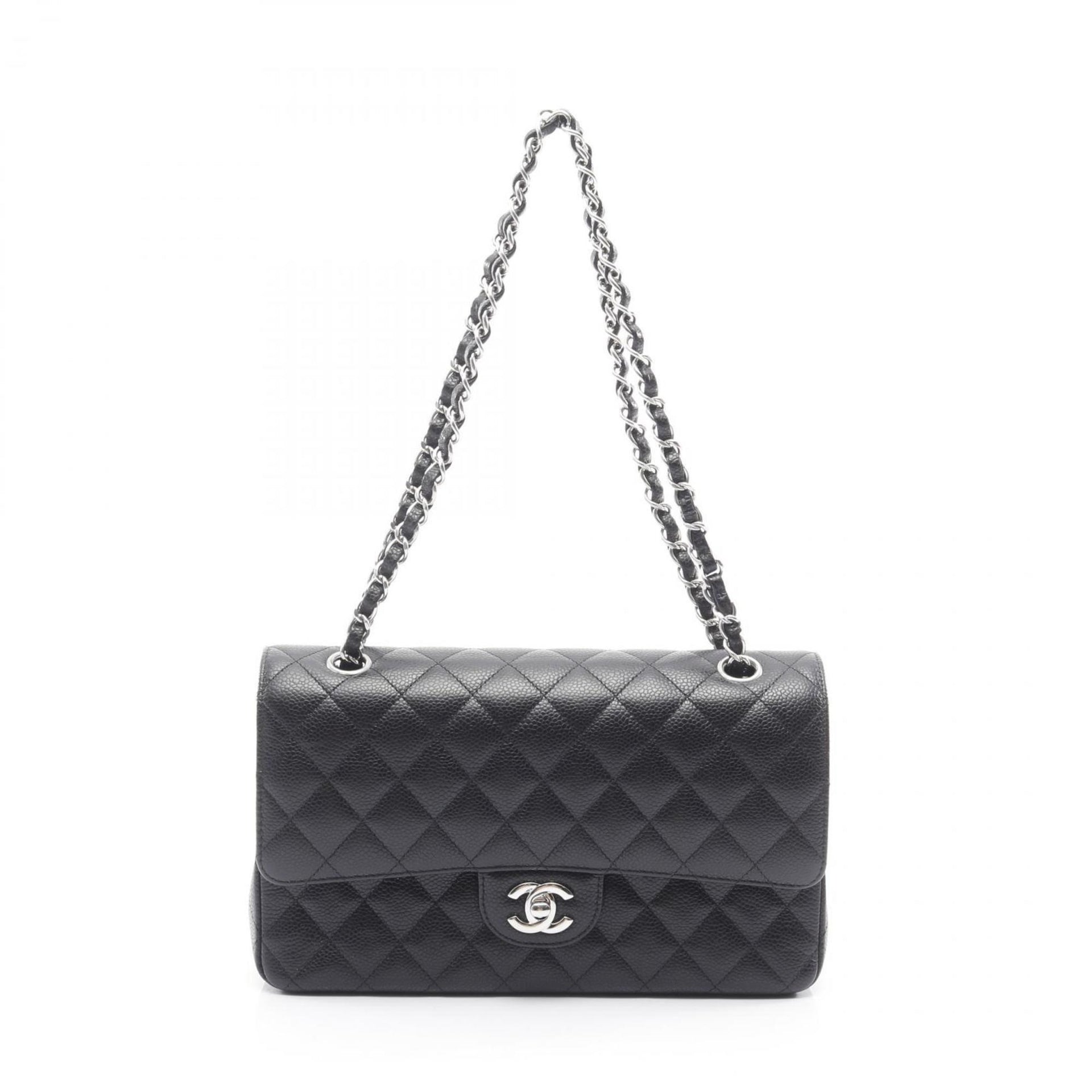 CHANEL Matelasse Double Flap Shoulder Bag in Grained Calfskin Leather, Black, Women\'s, A01112