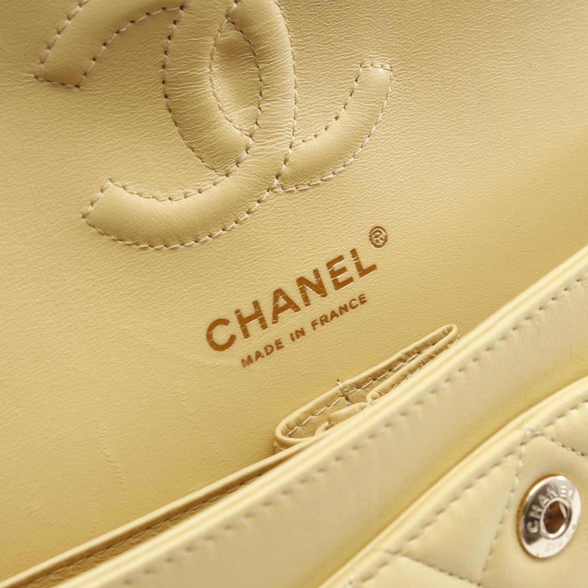 CHANEL Matelasse Double Flap Shoulder Bag in Lambskin Leather, Yellow, Women\'s, A01113