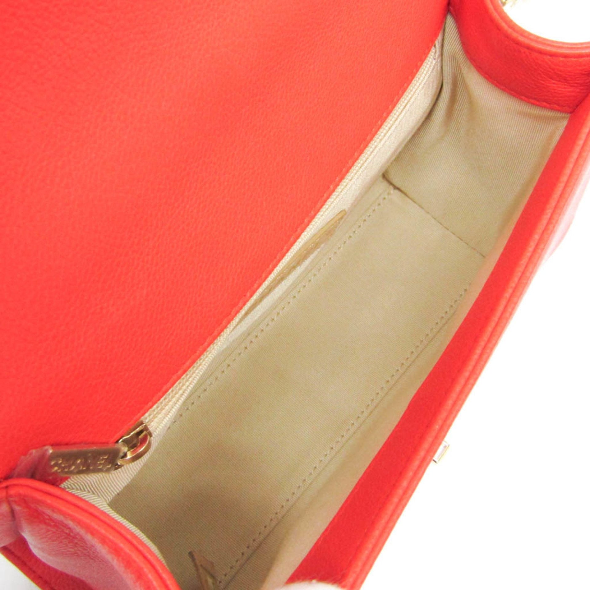 Chanel Matelasse Label Click Chain Shoulder Bag Women\'s Leather Shoulder Bag Orange