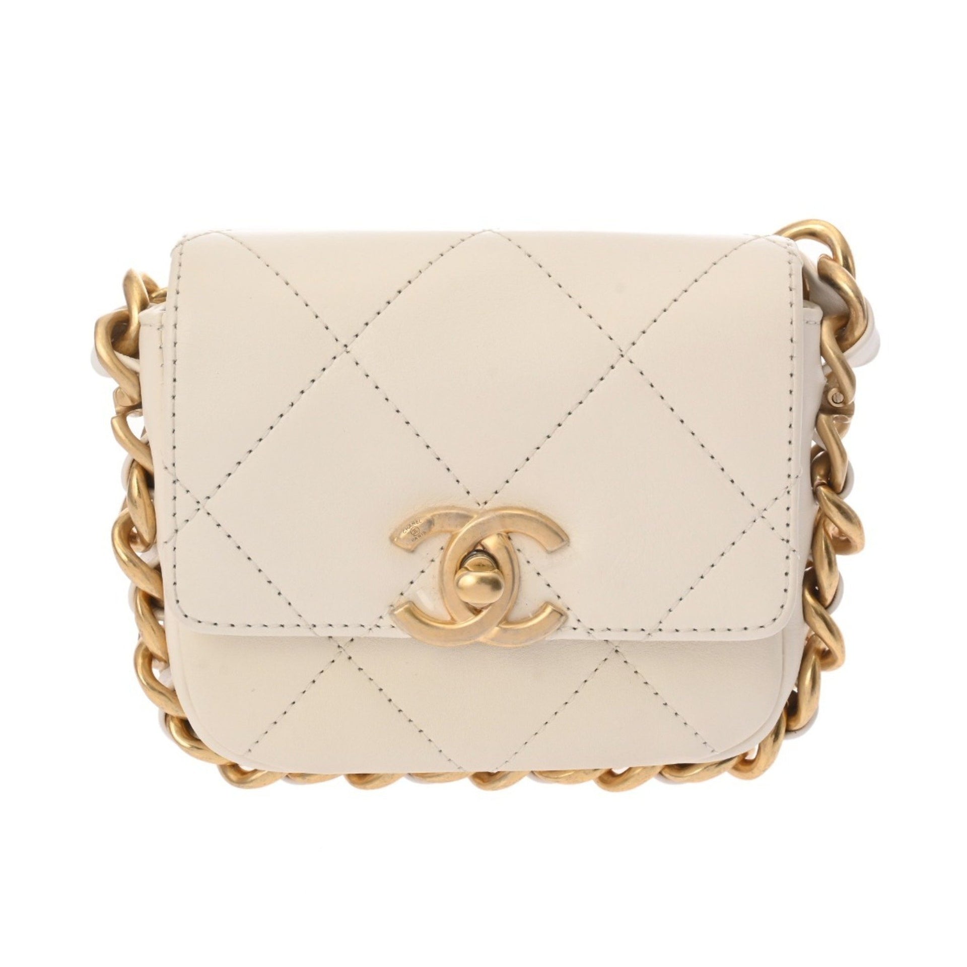 CHANEL Matelasse Mini Chain Shoulder Bag in White (AS2833) - Women\'s Calfskin