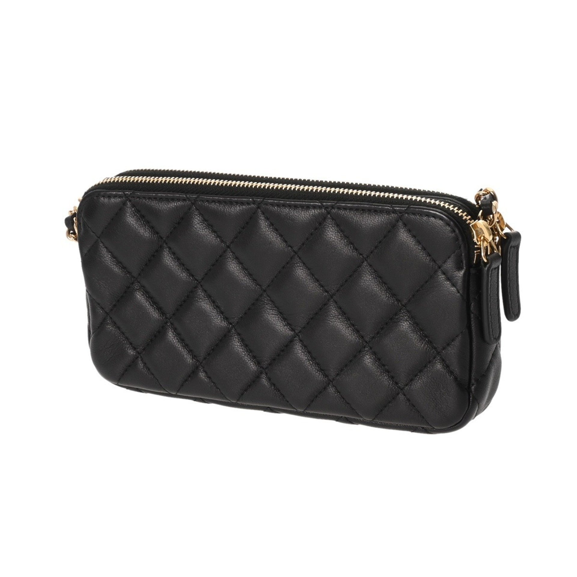 CHANEL Matelasse Phone Case Shoulder Bag with Double Zip, Black, Women\'s Lambskin