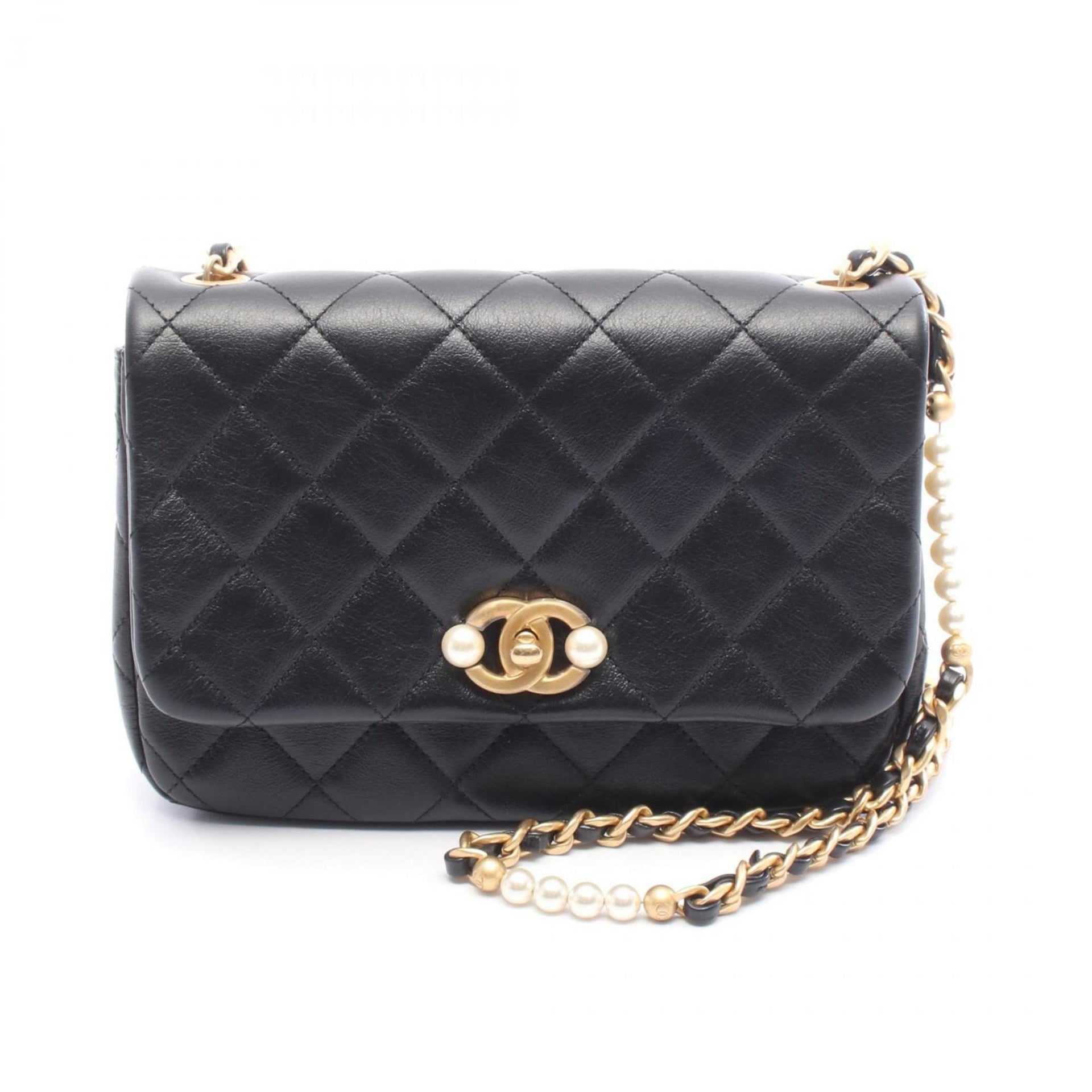 CHANEL Matelasse Shoulder Bag in Lambskin Leather, Black, Women\'s, AS3001