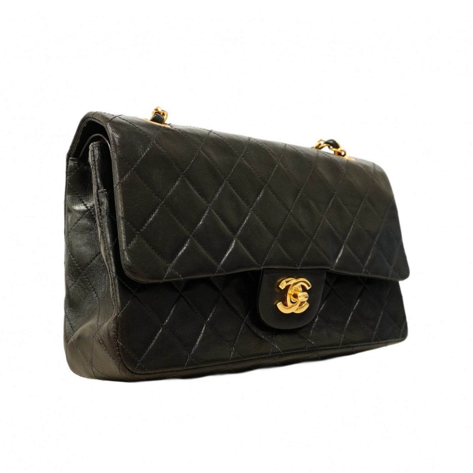 Chanel Matelasse Shoulder Bag with Double Flap and Chain, Lambskin, Black, Women\'s