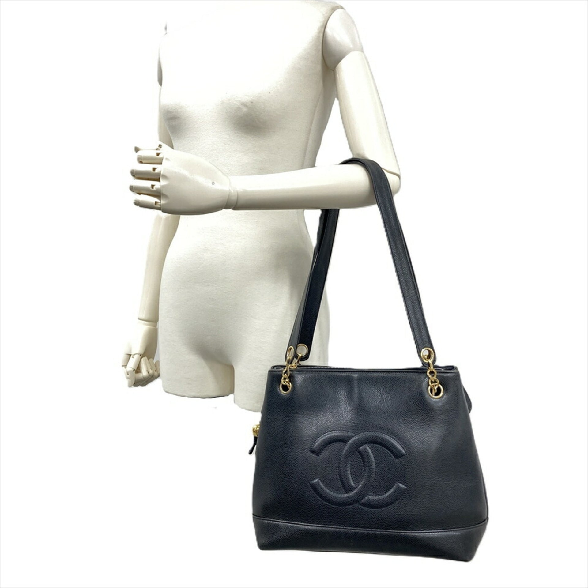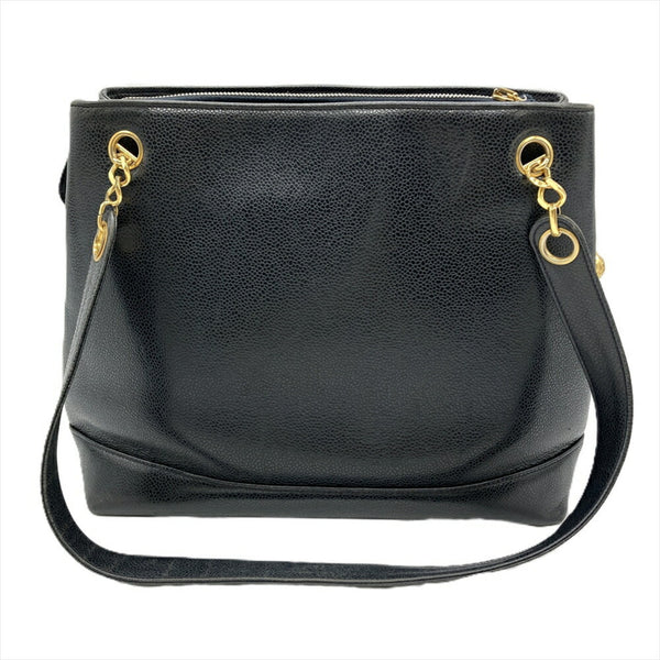 CHANEL Shoulder Bag Caviar Skin Black Coco Mark Tote Women\'s