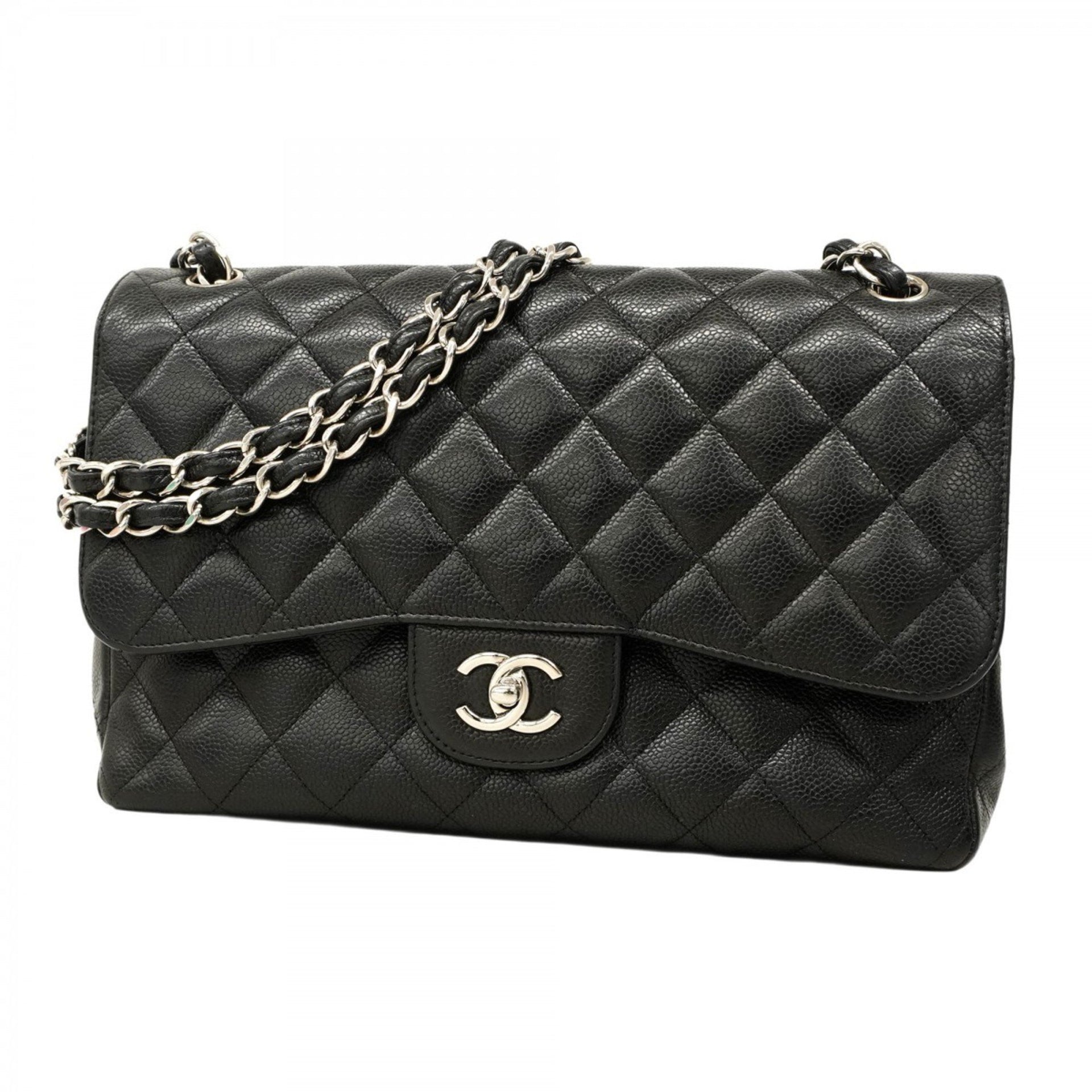 Chanel Shoulder Bag, Deka Matelasse, Double Flap, Chain, Caviar Skin, Black, Women\'s