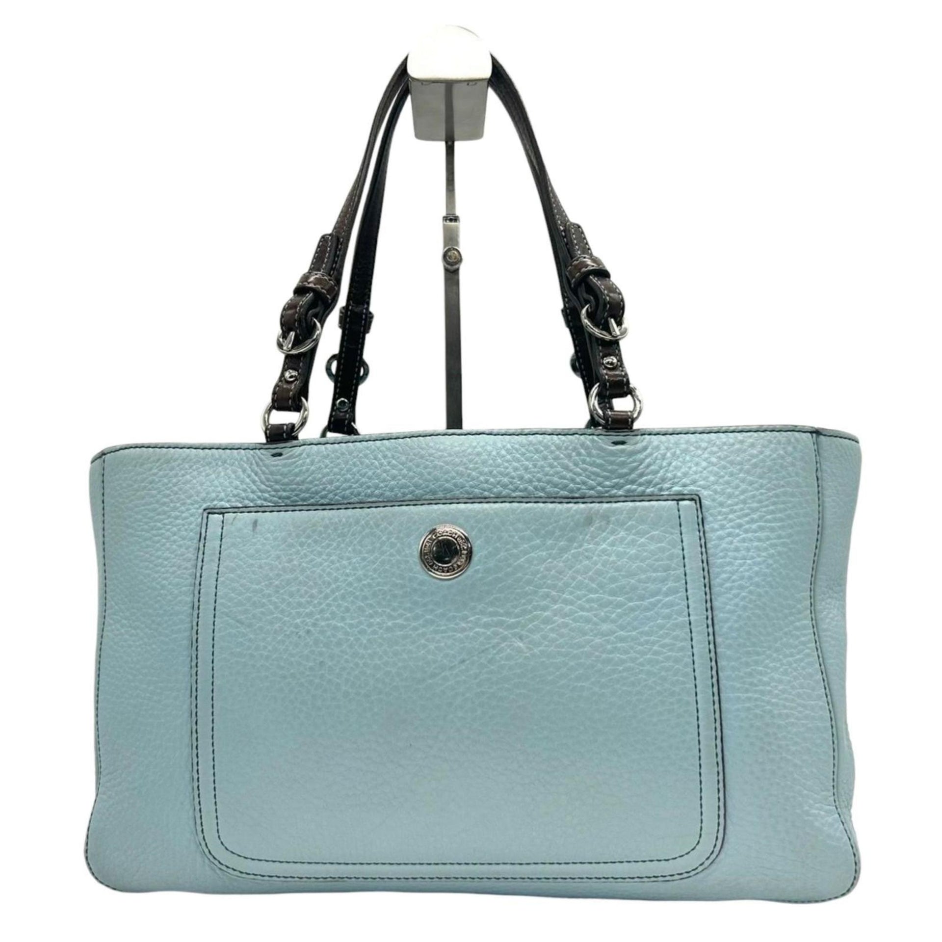Coach Hampton Leather Tote Bag (8A44) - Light Blue/Brown, Genuine Leather, Shoulder Bag, A4 Size, Women\'s, E5