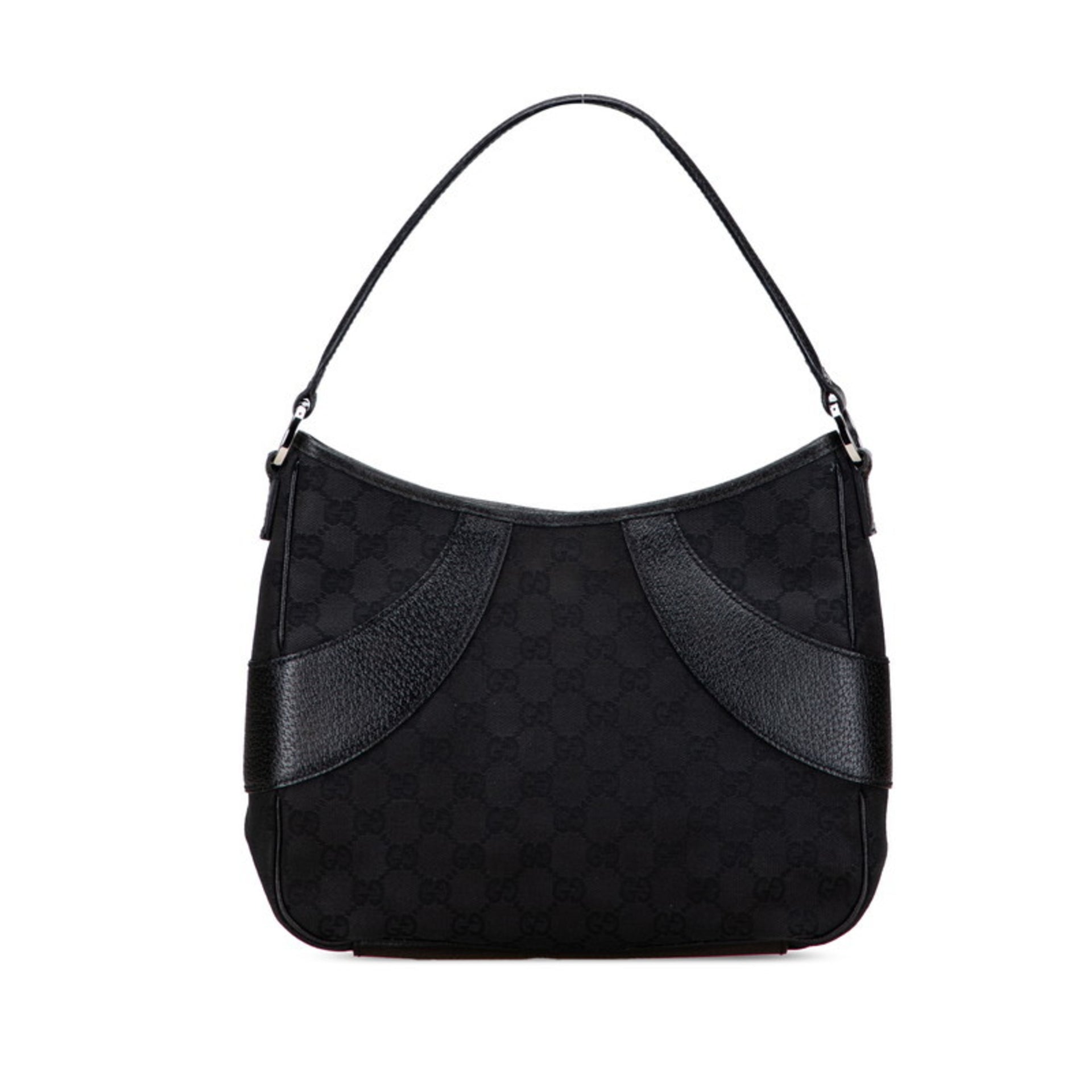 Gucci GG Canvas One-Shoulder Bag Handbag 113012 Black Leather Women\'s GUCCI