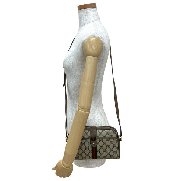 GUCCI Old Gucci Sherry Line GG Logo Leather Mini Shoulder Bag/Pochette Brown 77725
