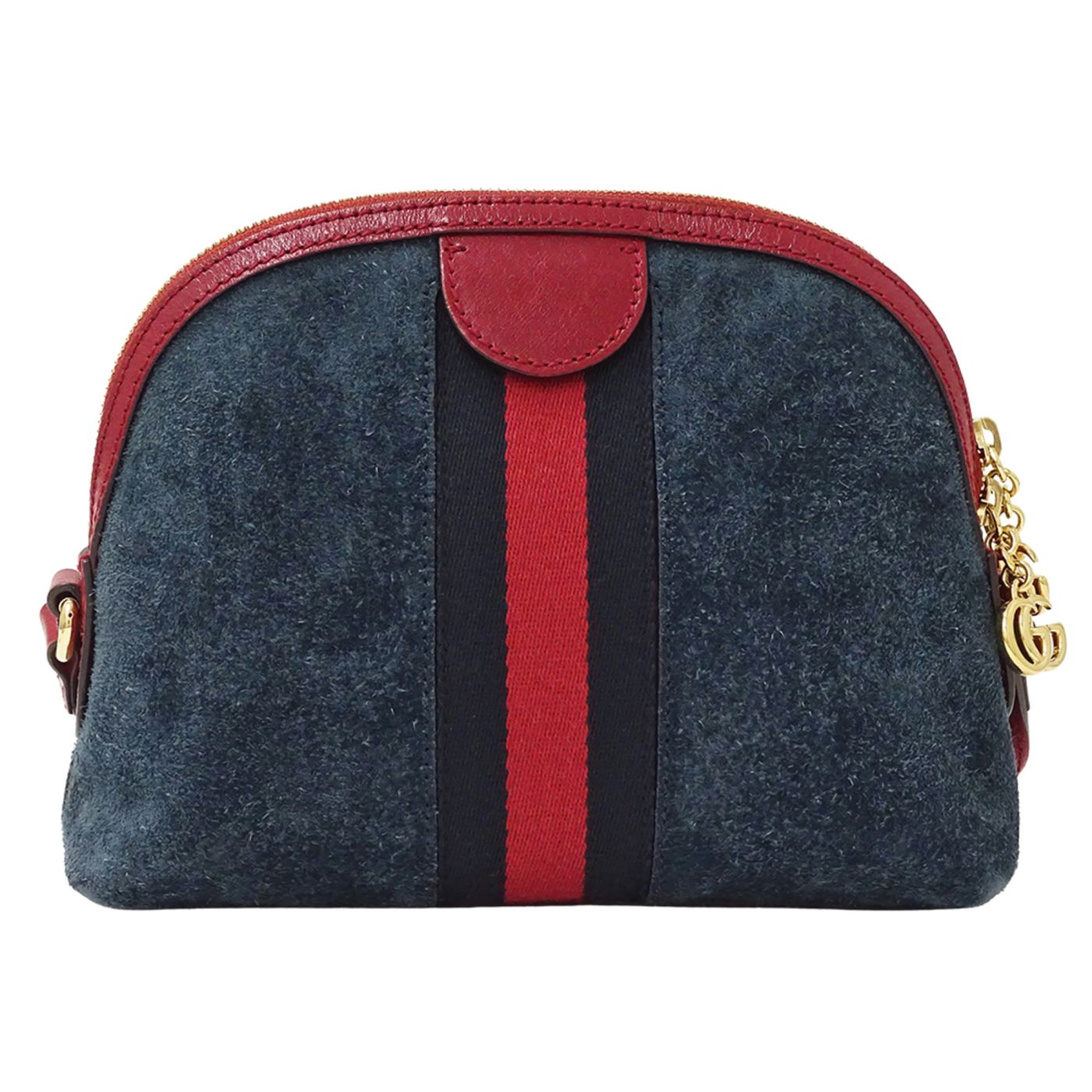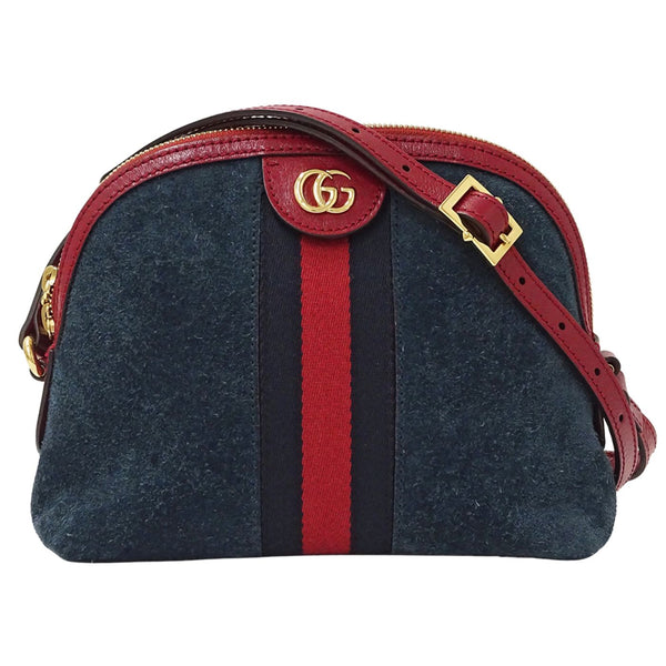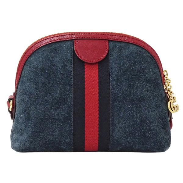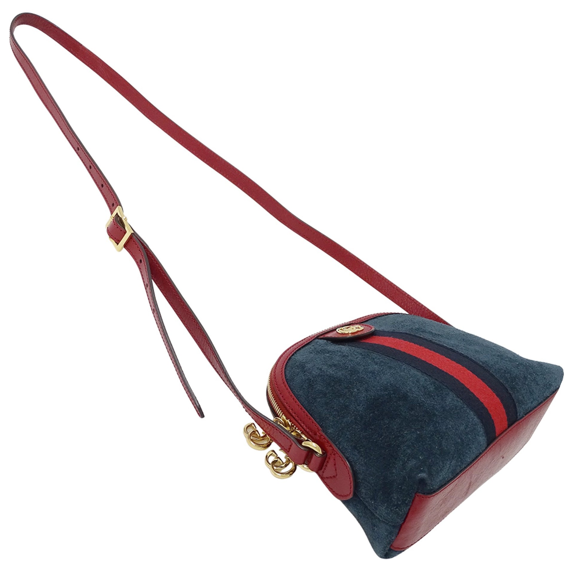 Gucci Ophidia Suede Shoulder Bag (499621) - Women\'s, Navy/Red. Small, crossbody mini bag.
