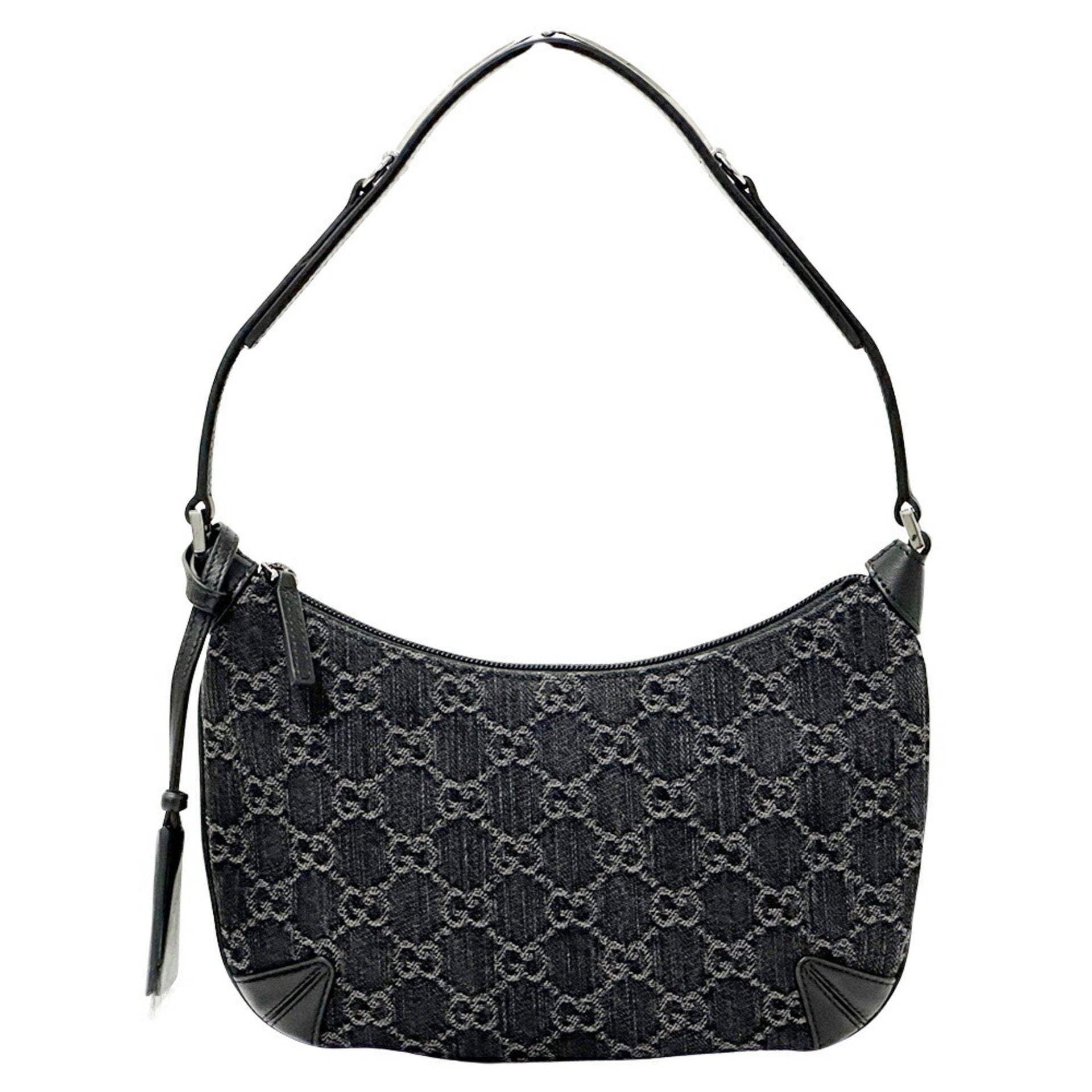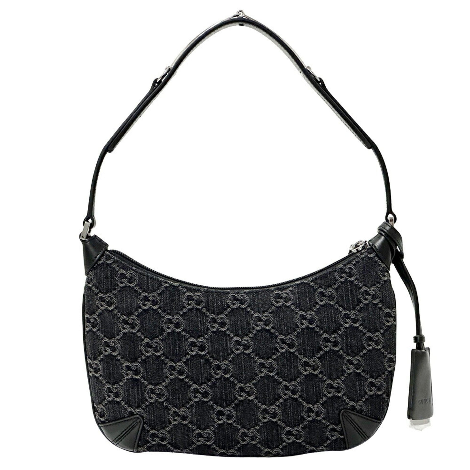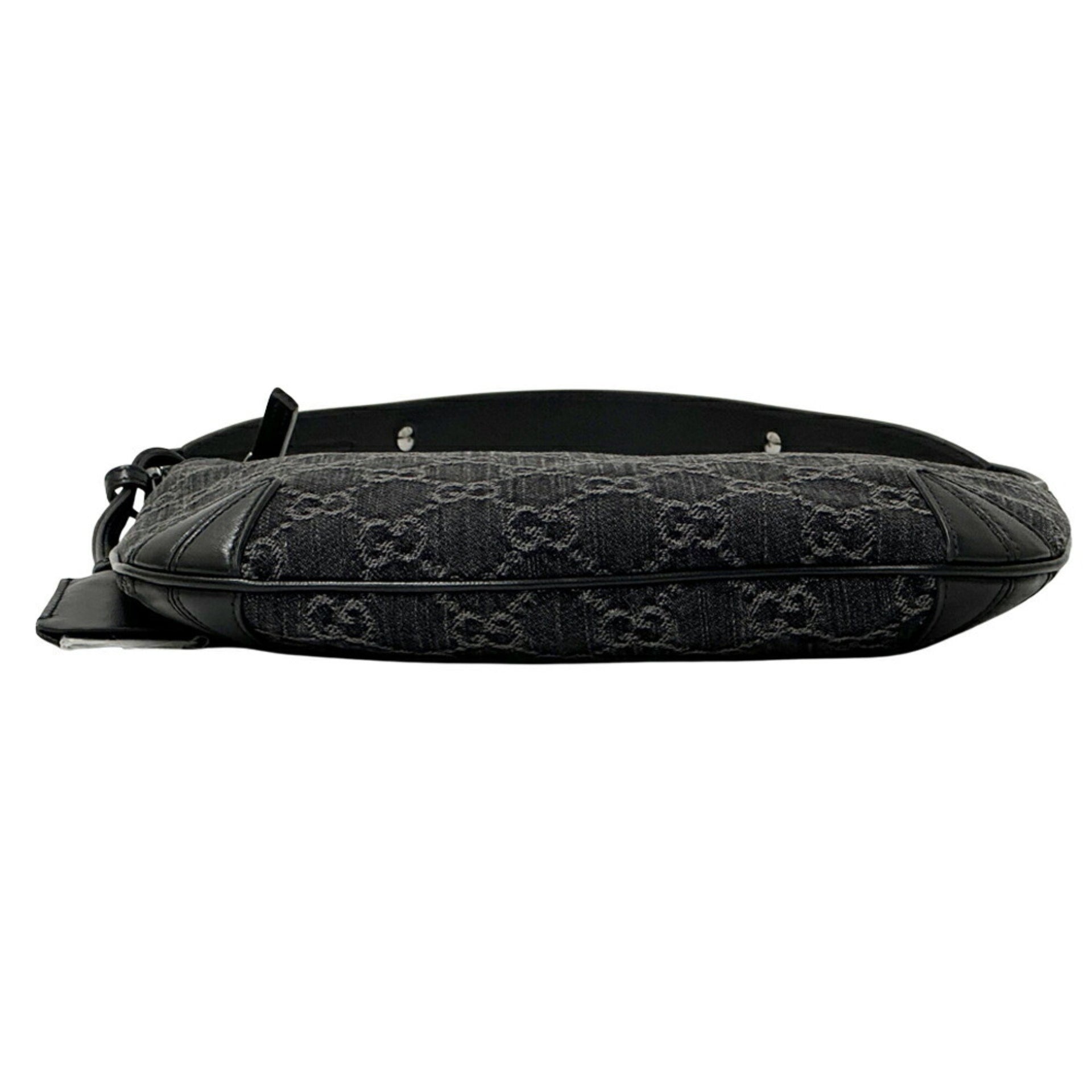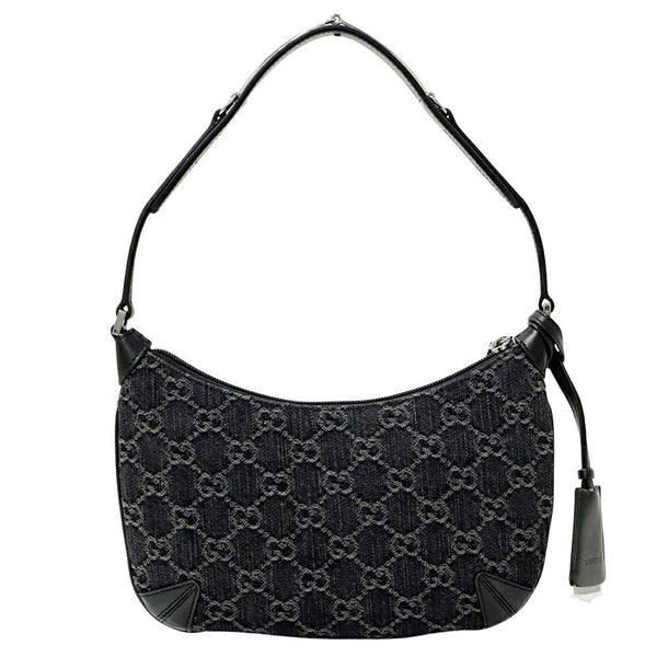 Gucci Women\'s GG Denim Horsebit Shoulder Bag in Black and Grey Leather (774719)