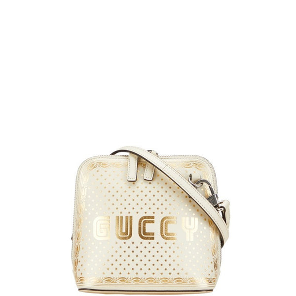 Gucci x SEGA GUCCY Print Crossbody Shoulder Bag 511189 White Gold Leather Women\'s GUCCI