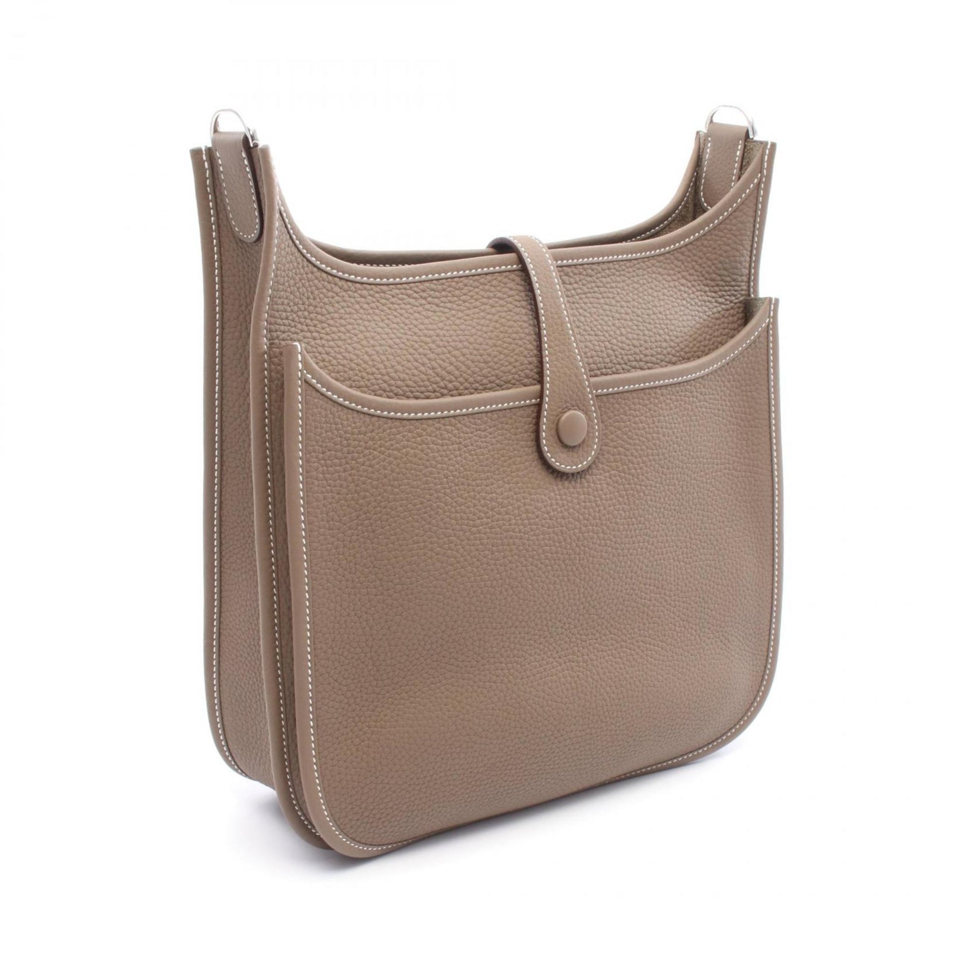 Hermes Hermès Evelyn 3 Trois PM Etoupe Shoulder Bag in Taurillon Clemence Leather, Brown, for Women