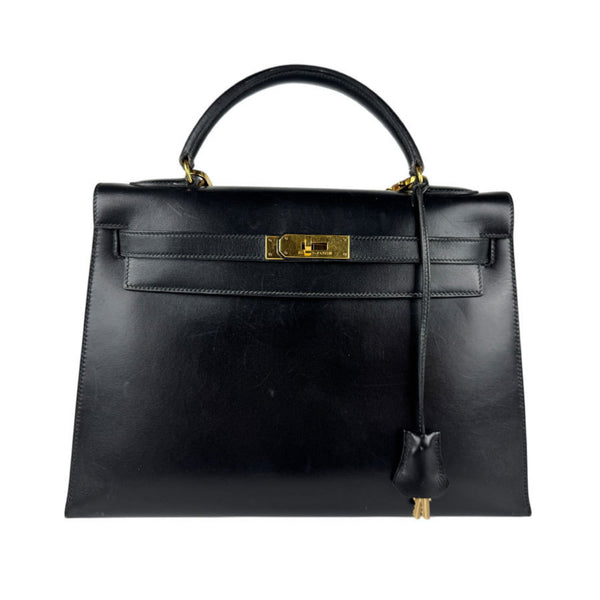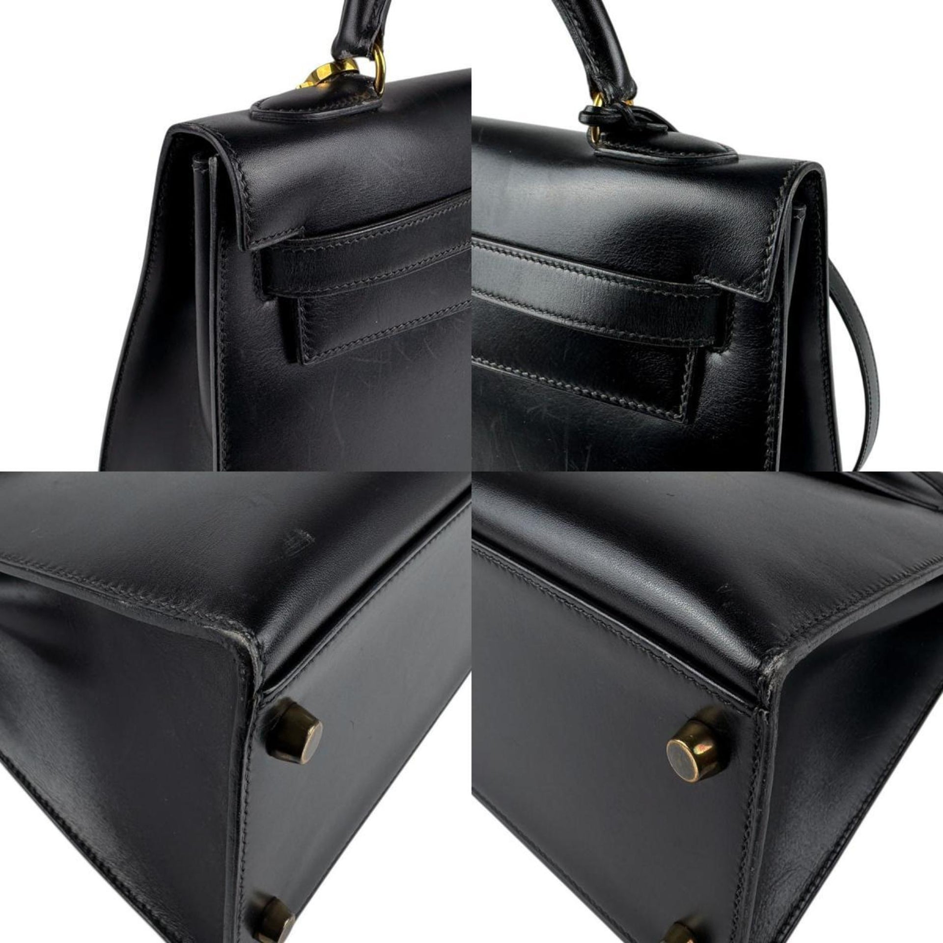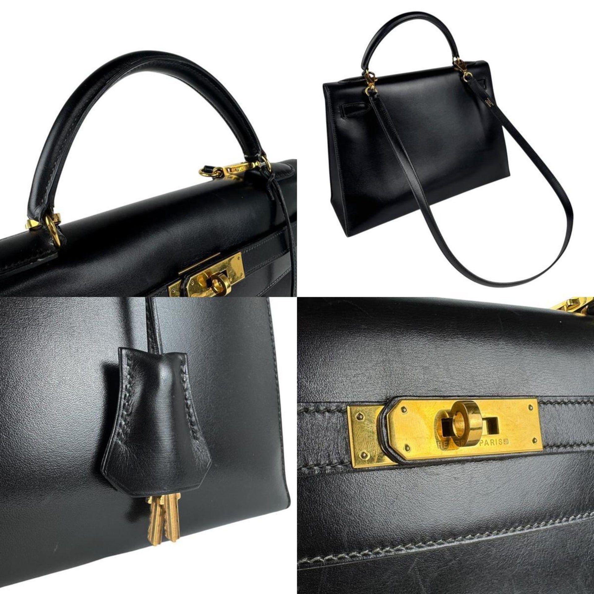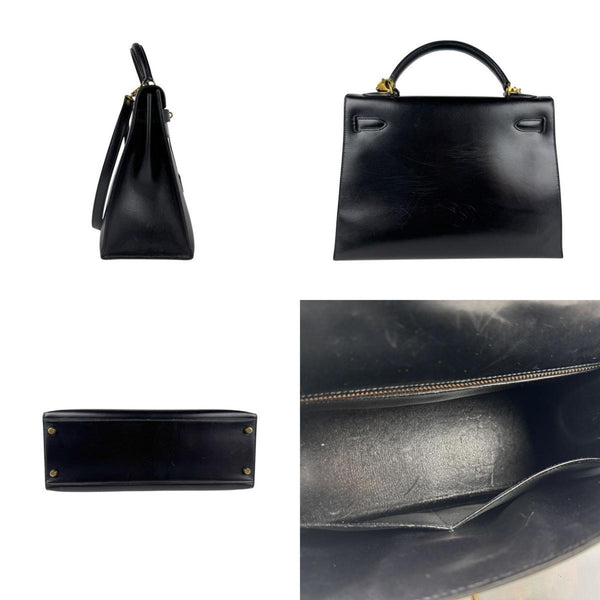 Hermes HERMES handbag shoulder bag Kelly 32 outer stitching box calf black gold ladies z4990