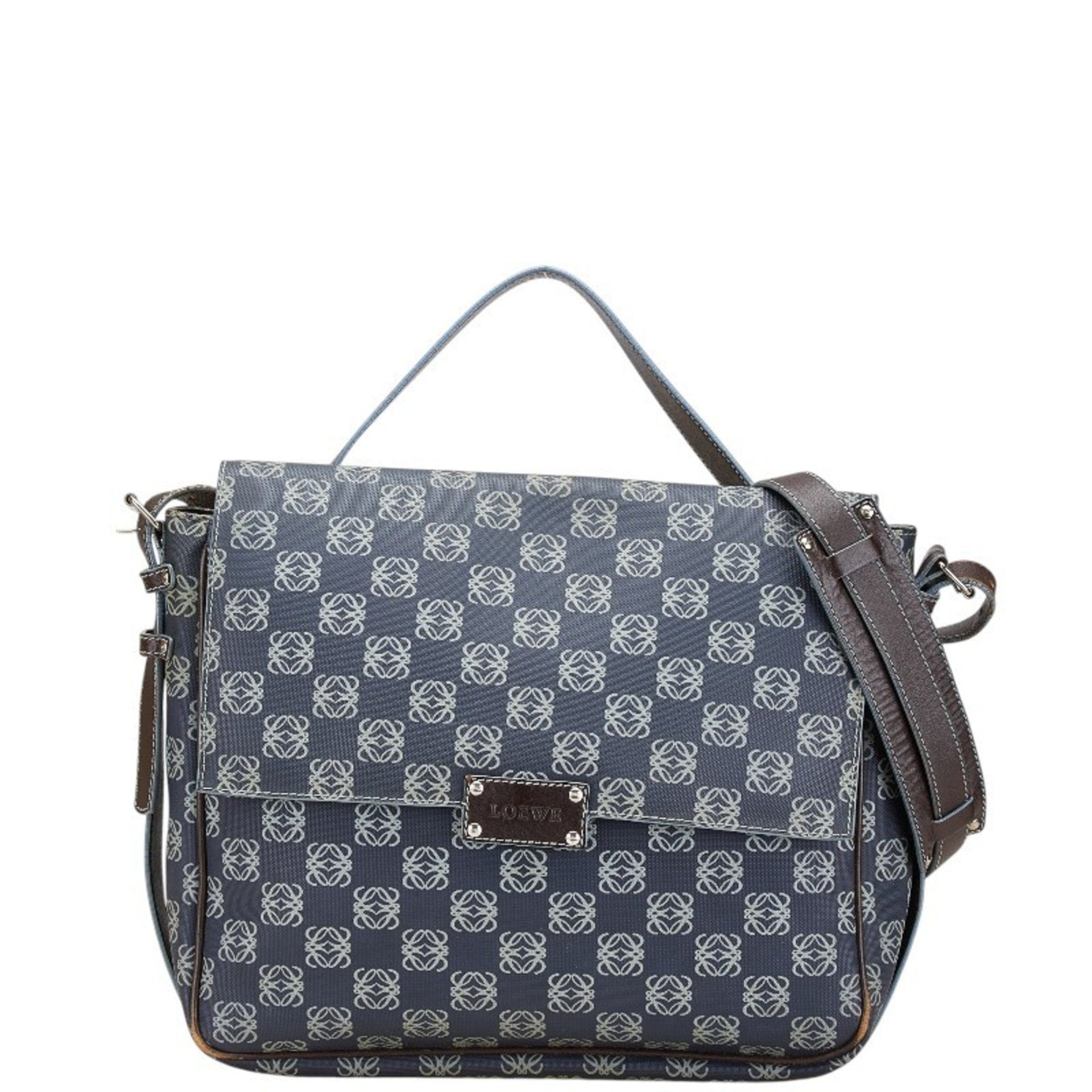 LOEWE Anagram Crossbody Shoulder Bag/Messenger Bag in Navy and Gray Leather for Women
