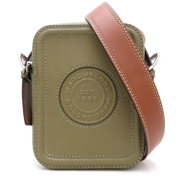 MARC JACOBS Signet Stitch Frame Crossbody Bag H135L01RE21, Leather Shoulder Bag, Khaki and Brown, Women\'s, Outlet, 352743