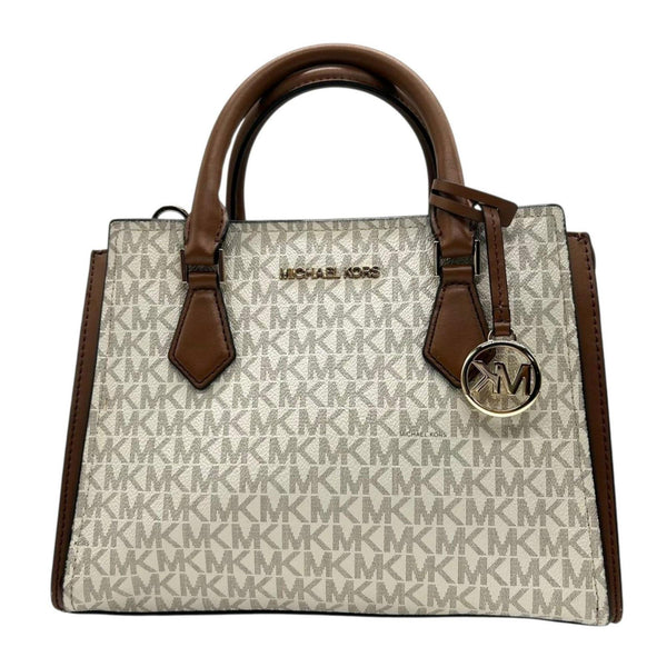 MICHAEL KORS 2-Way Handbag/Shoulder Bag with Signature MK Logo Charm, Brown/Beige Leather Gold Hardware, Women\'s, Size s71