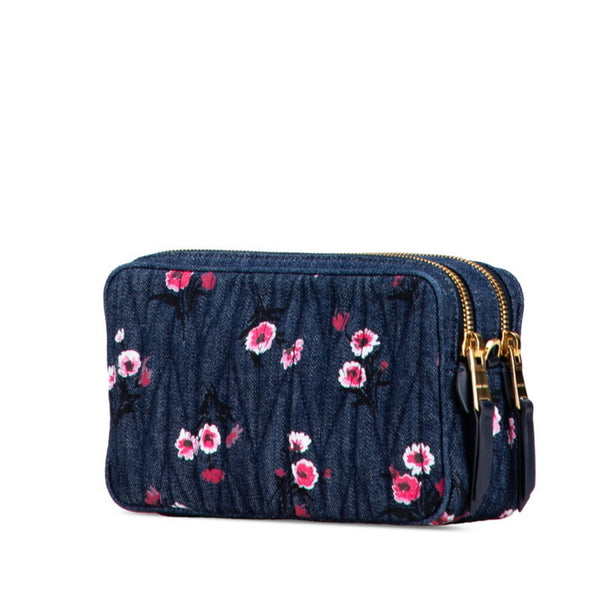 Miu Miu Miu Flower Print Shoulder Bag in Blue and Pink Denim Leather for Women MIUMIU