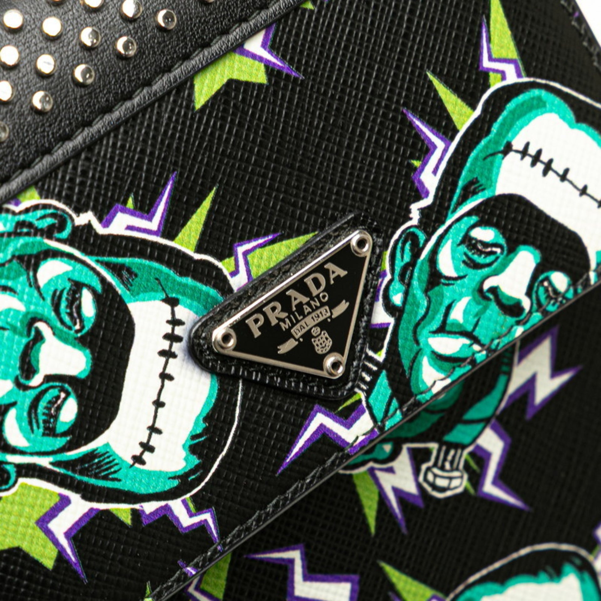 Prada Frankenstein Triangle Logo Plate Shoulder Bag with Smartphone Case, 2ZH068, Black and Multicolor Leather, Men\'s