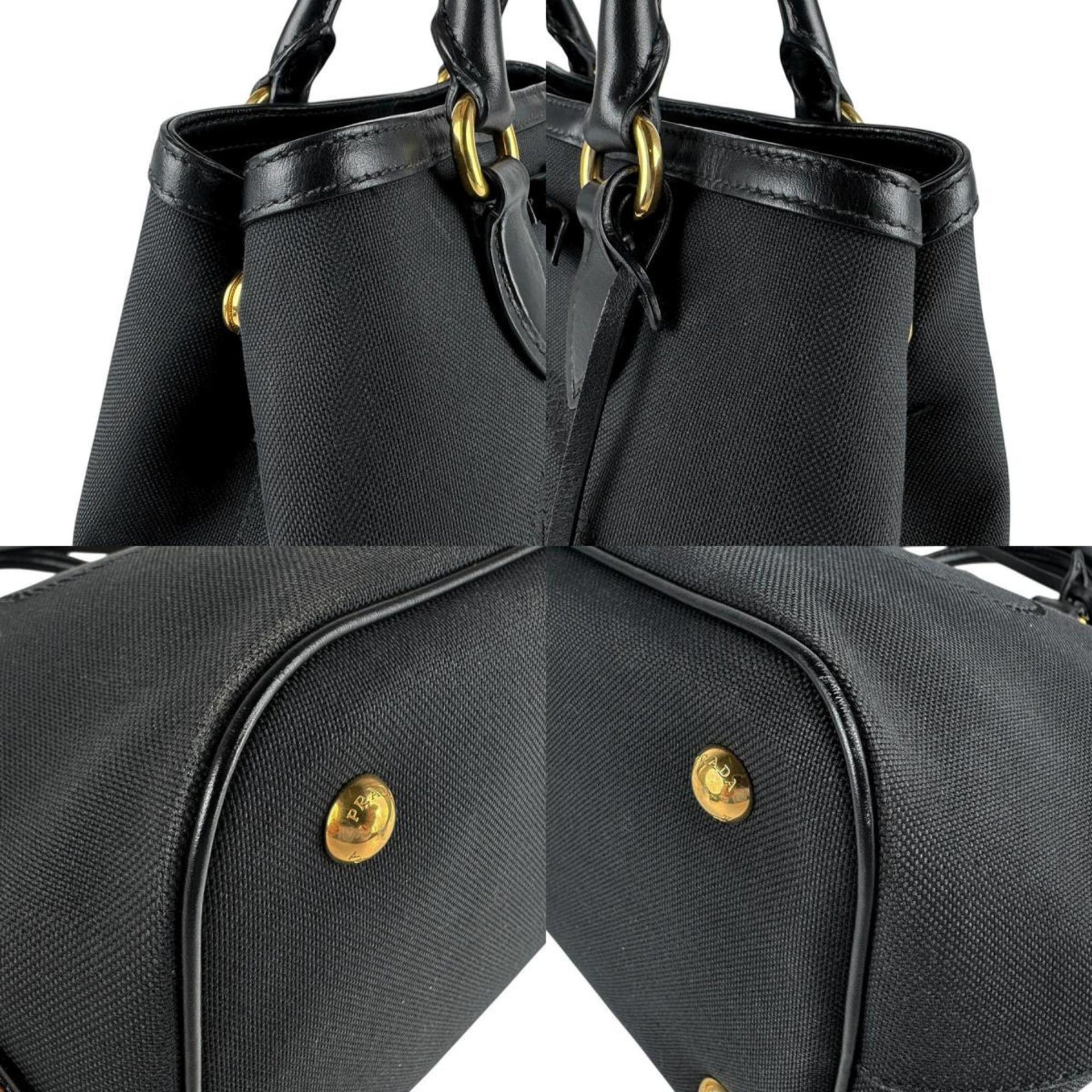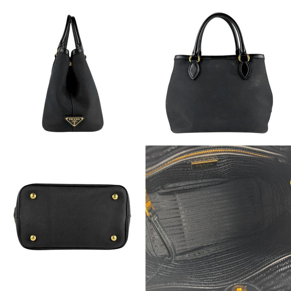 Prada PRADA Handbag Shoulder Bag Jacquard Canvas Leather Black Women\'s z7085