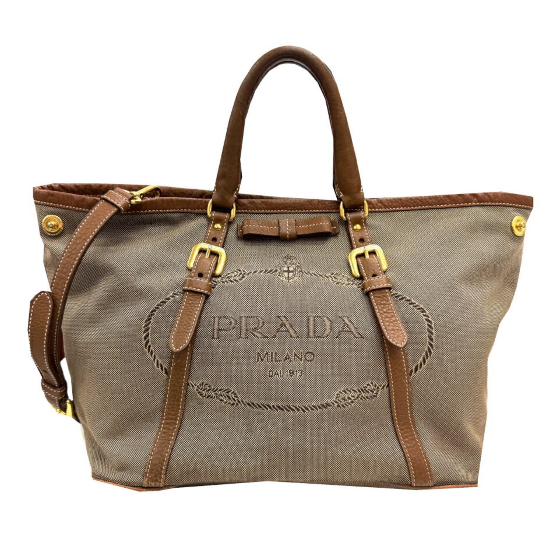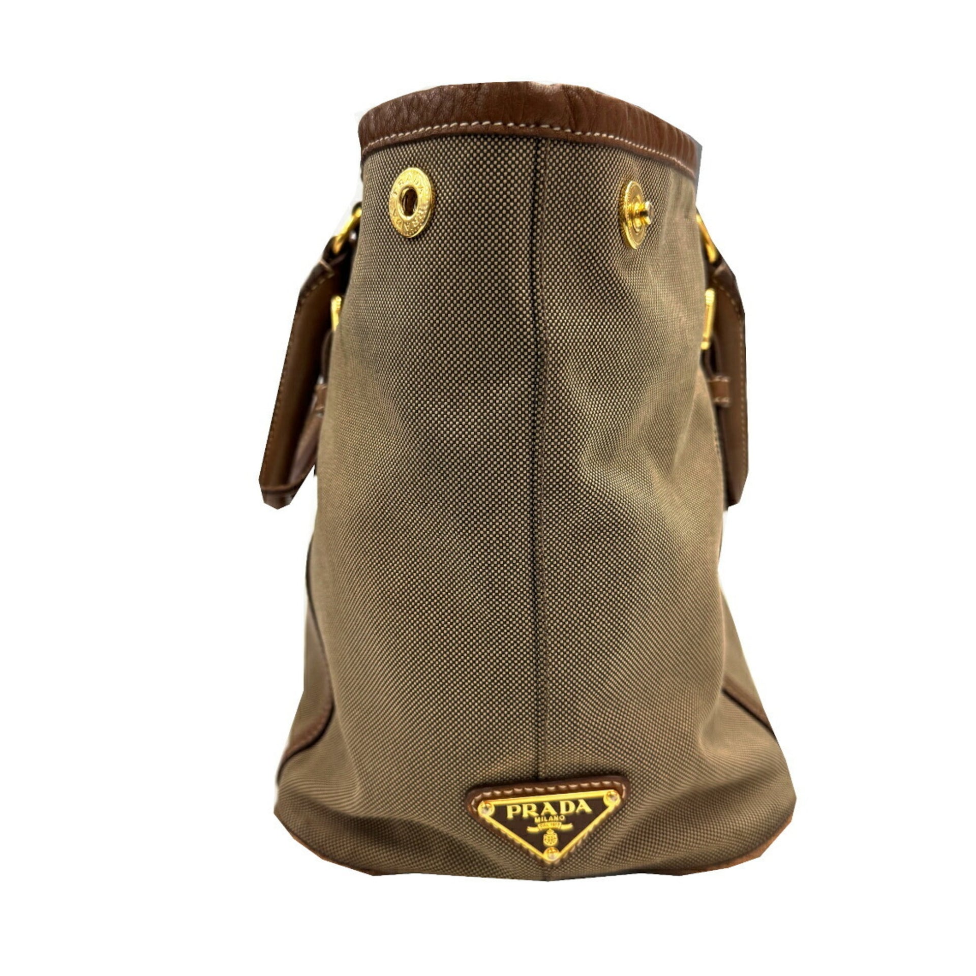 PRADA Prada Jacquard Shoulder Bag Canvas Leather Women\'s