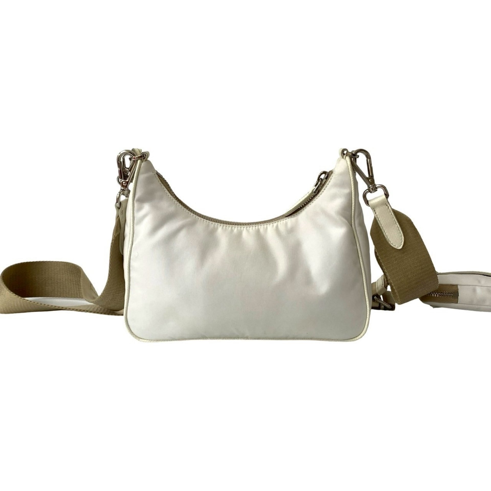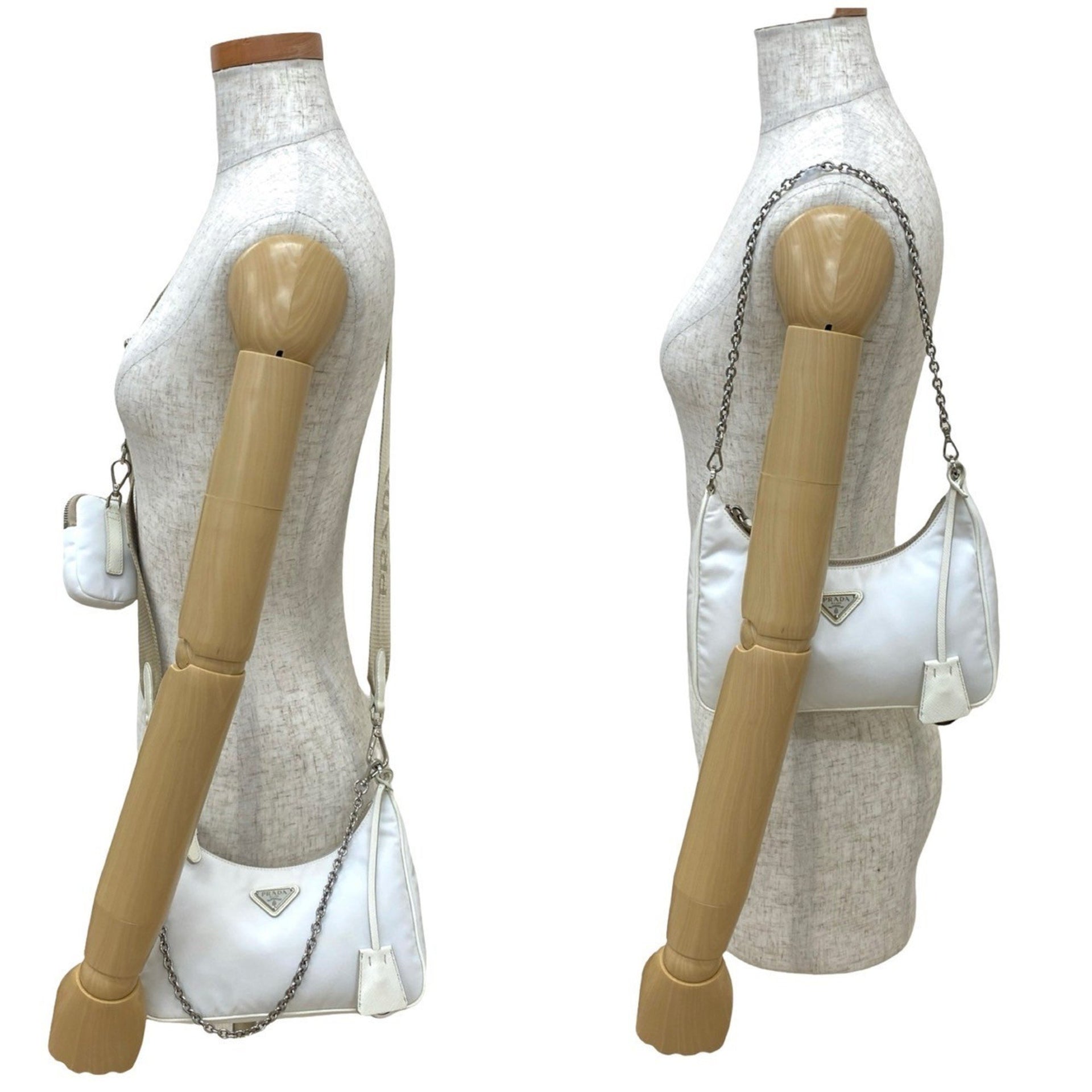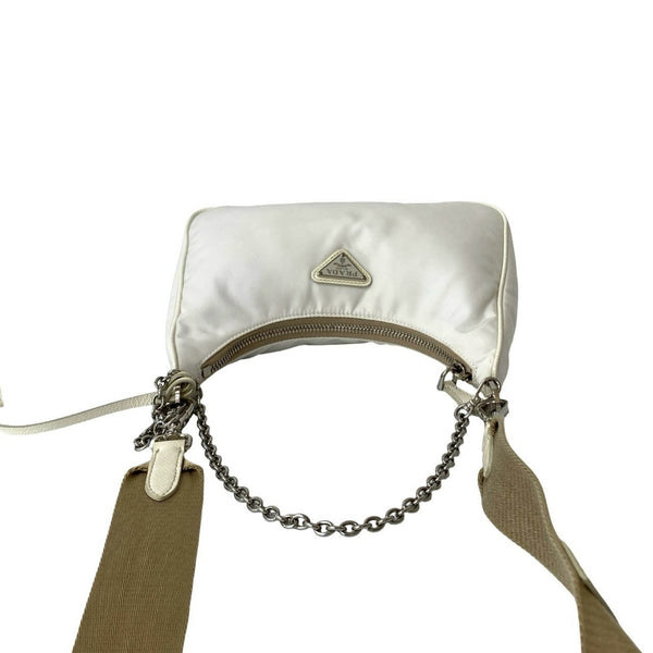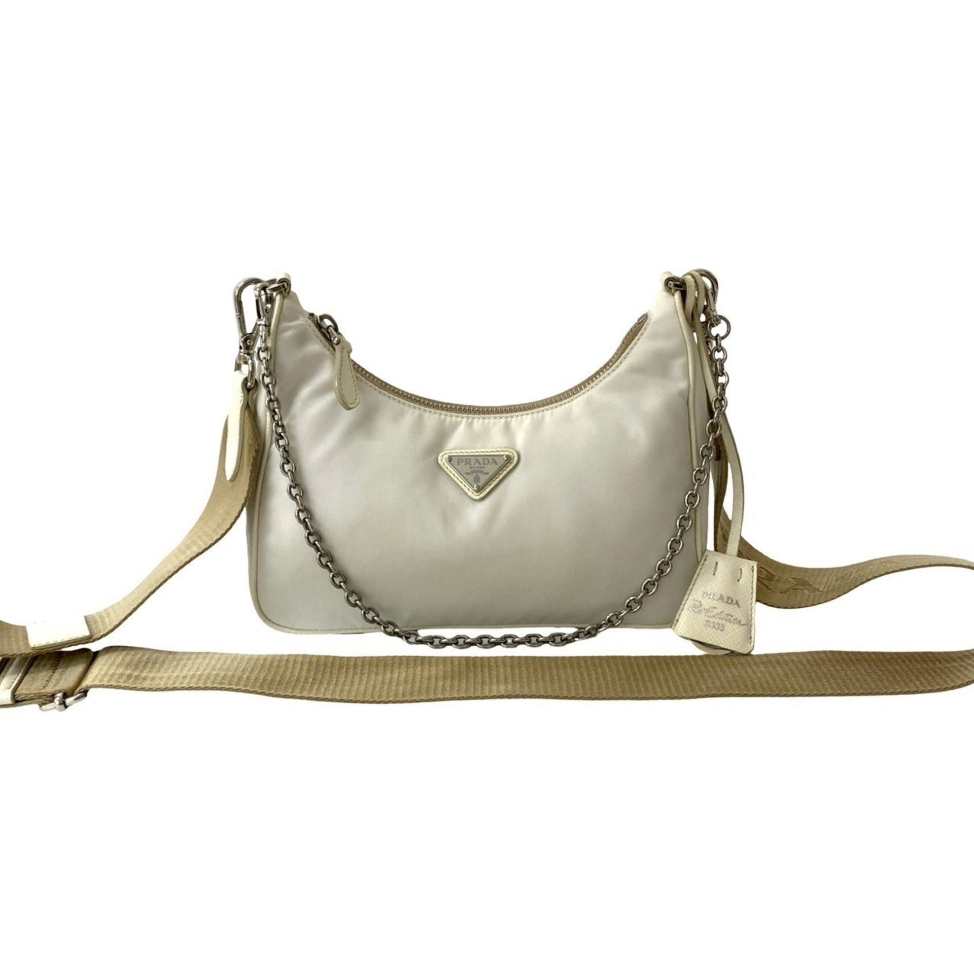 PRADA Re-Edition Triangle Logo Hardware Nylon Saffiano Leather 2-Way Chain Semi-Shoulder Bag/Pochette 19664