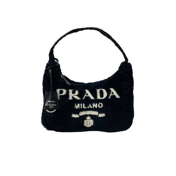 PRADA Terry Mini Re-Edition Triangle Logo Hardware Pile Handbag One-Shoulder Bag Pouch Black 65044