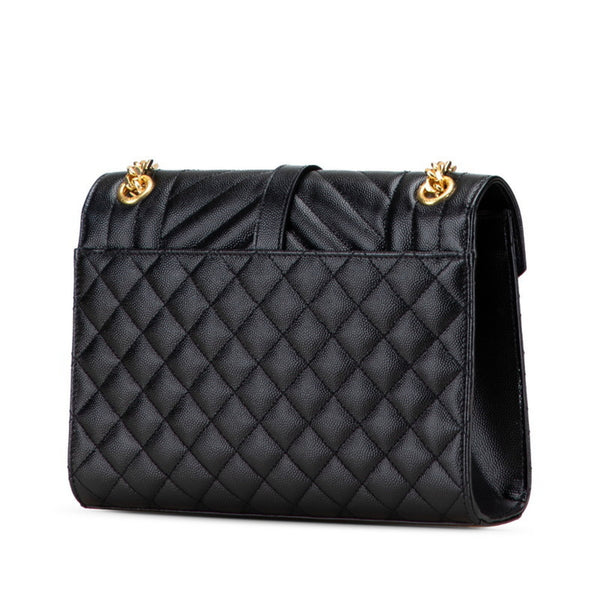 Saint Laurent Envelope Chain Shoulder Bag, Black and Gold Leather, Women\'s, SAINT LAURENT