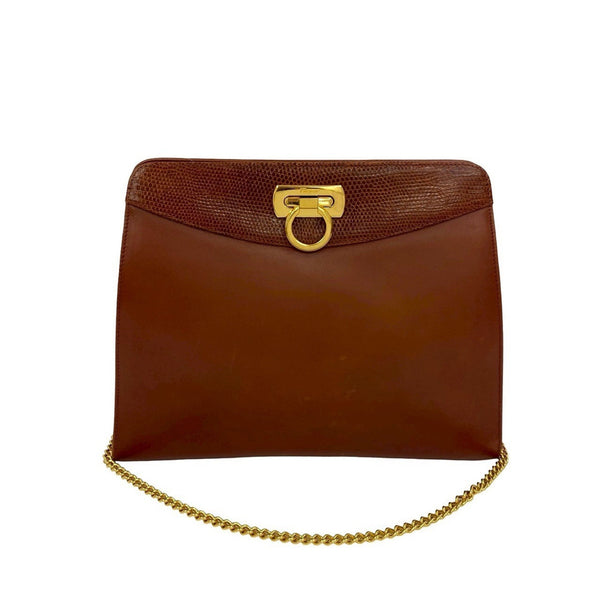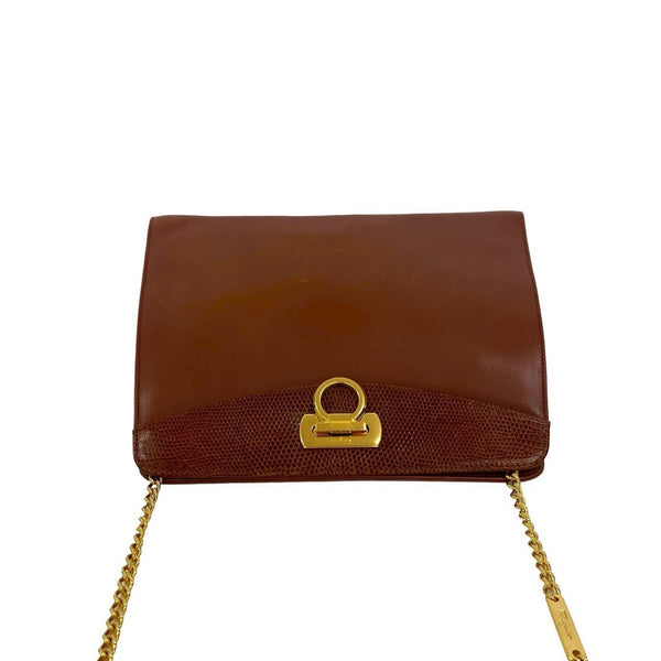 Salvatore Ferragamo Gancini logo hardware leather chain shoulder bag, brown, 35696