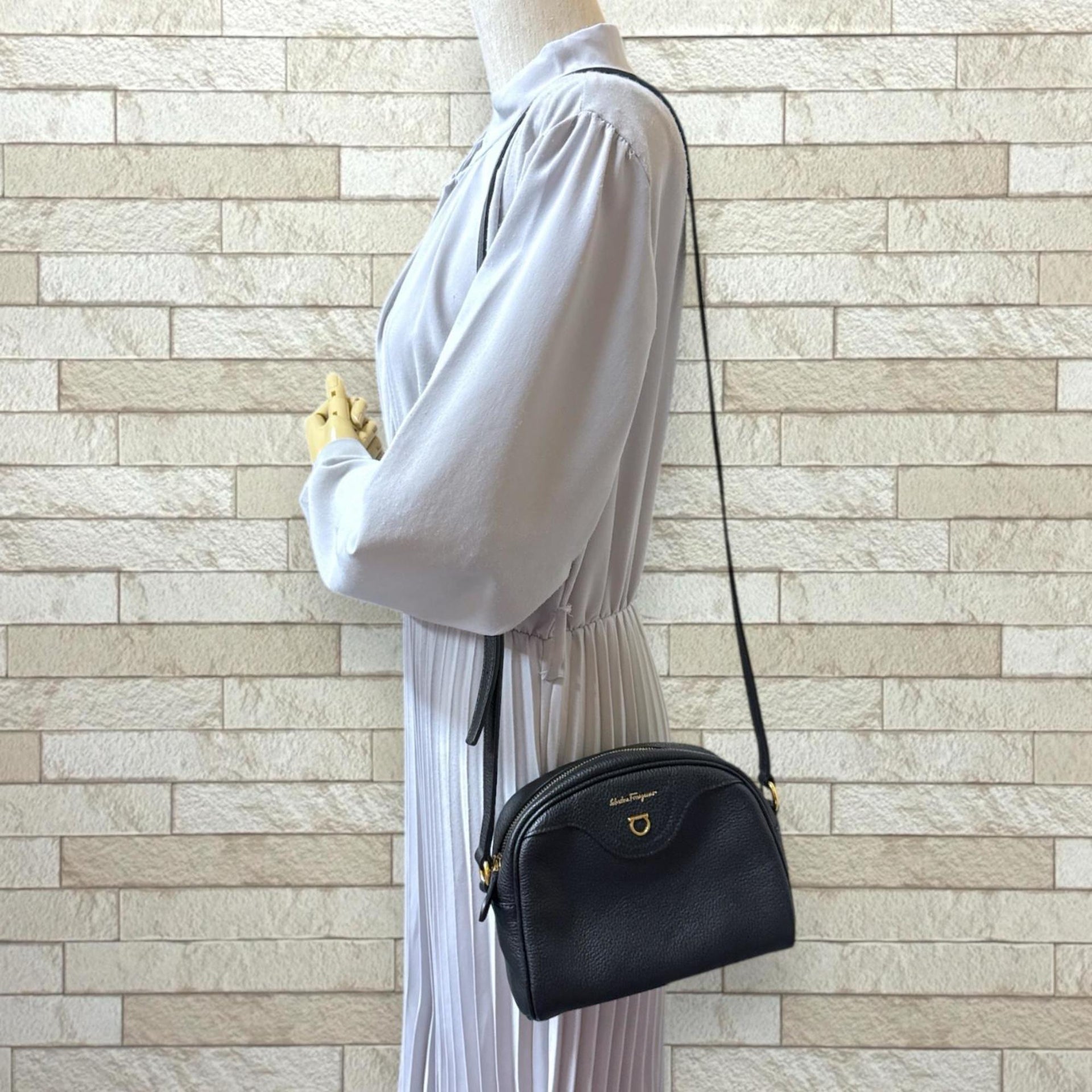 Salvatore Ferragamo Gancini Shoulder Bag, Leather, GU-210411, Black, Women\'s,