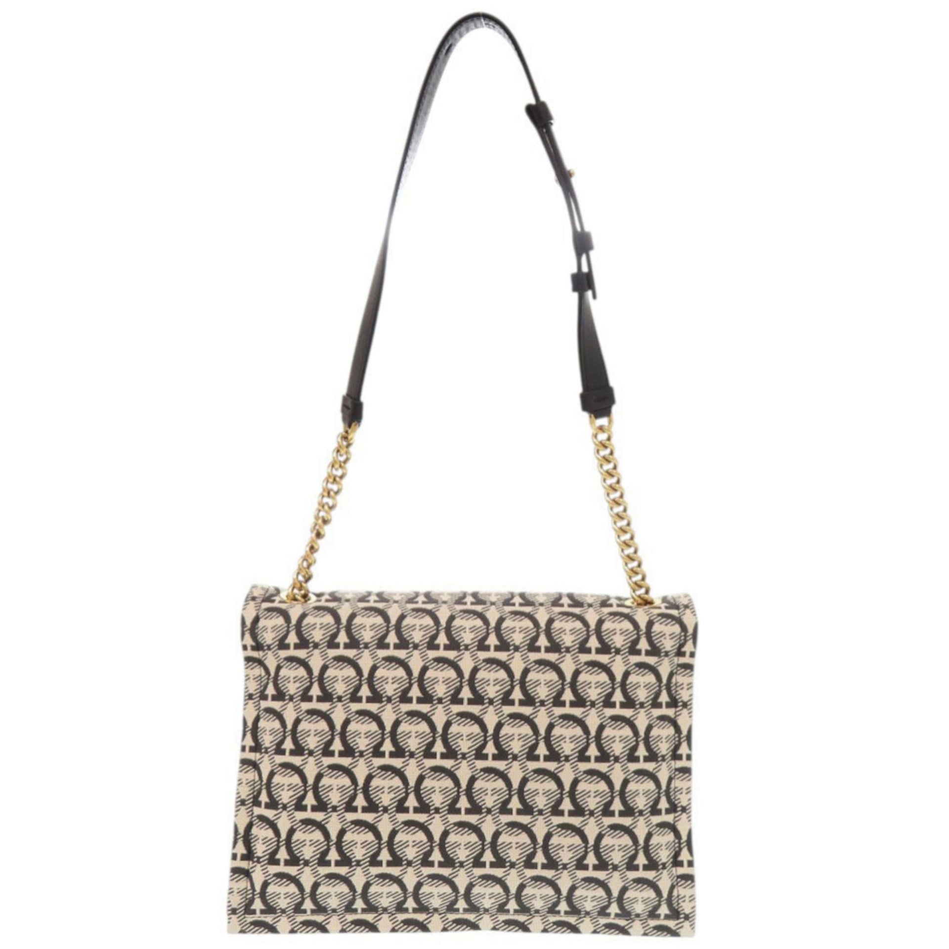 Salvatore Ferragamo VIVA Bow Canvas and Leather Ivory Shoulder Bag 1032