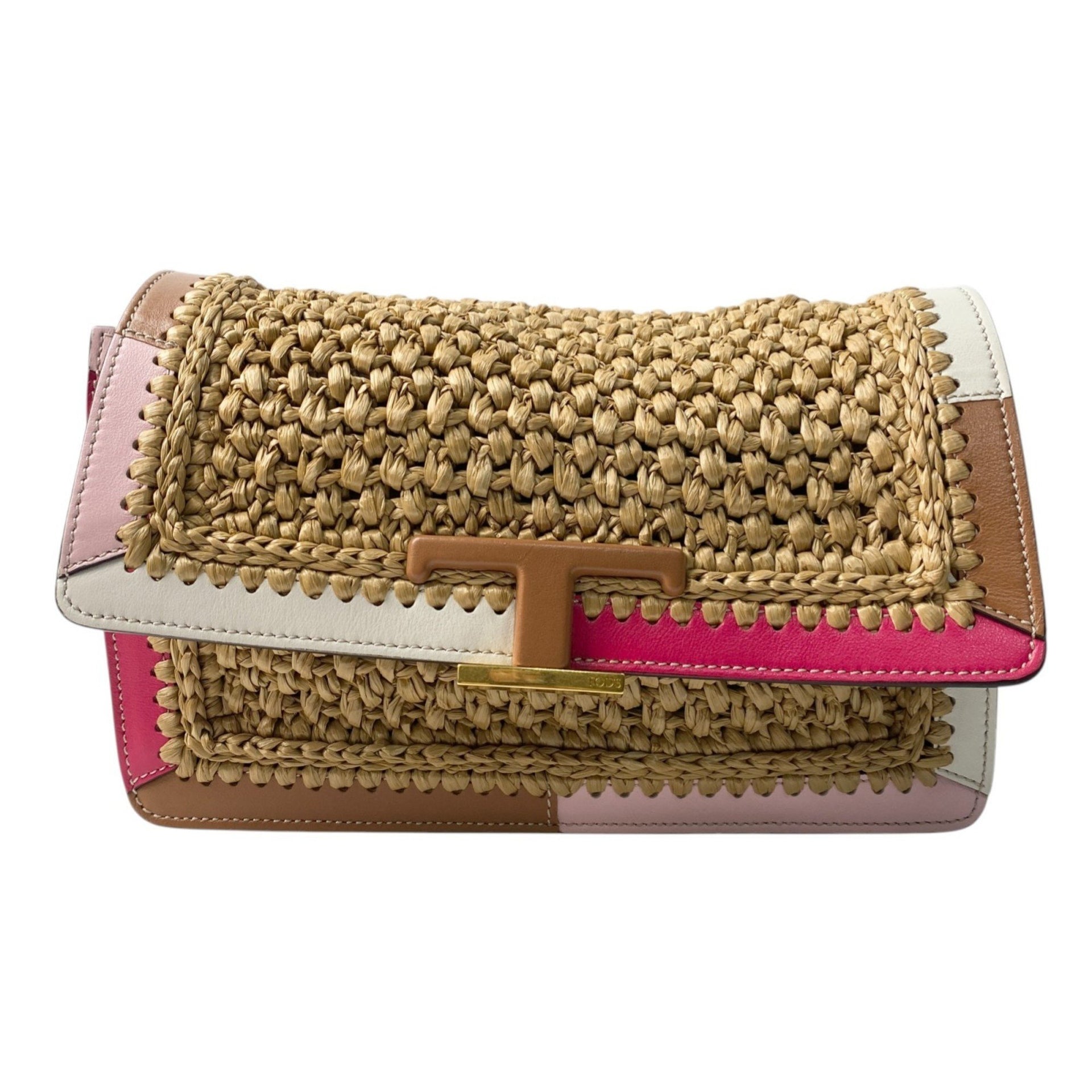 Tod\'s Women\'s T-Timeless Raffia 2-Way Shoulder Bag, Basket Handbag, Crossbody Bag