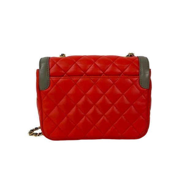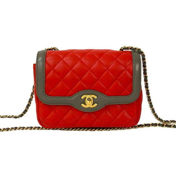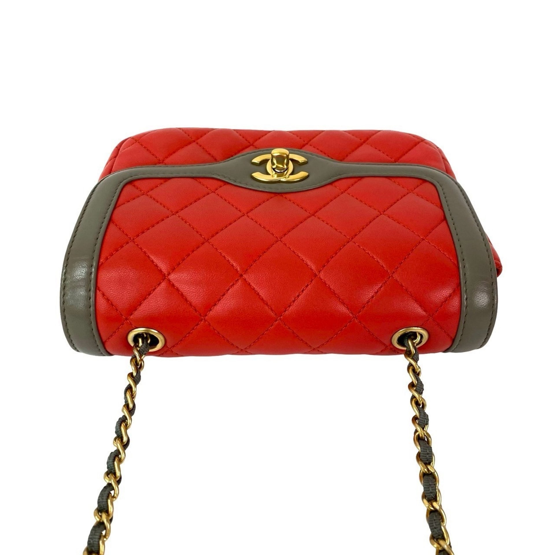 Unused, stored CHANEL Matelasse Coco lambskin chain shoulder bag in red and gray (25895)