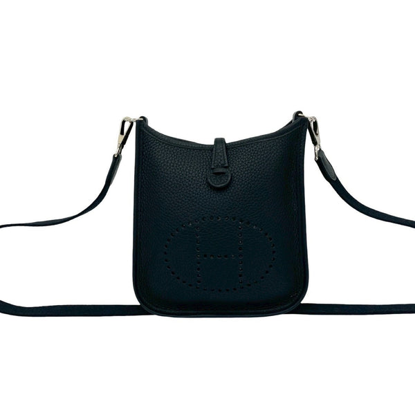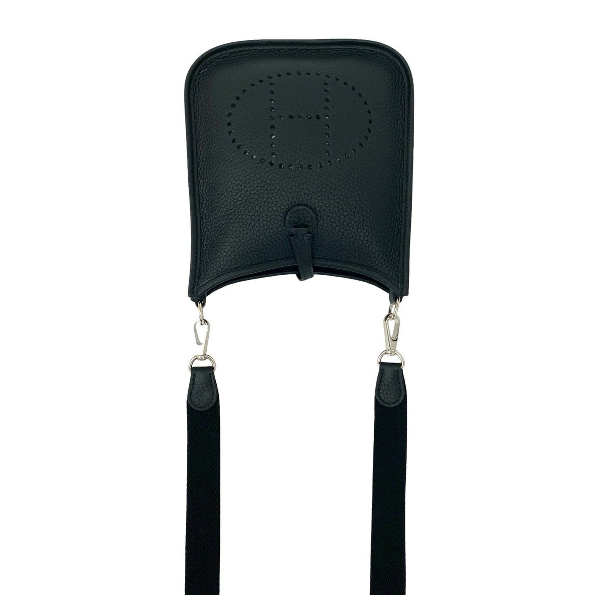 Unused U-stamped HERMES Evelyn TPM Taurillon Clemence Leather Mini Shoulder Bag in Black 64620