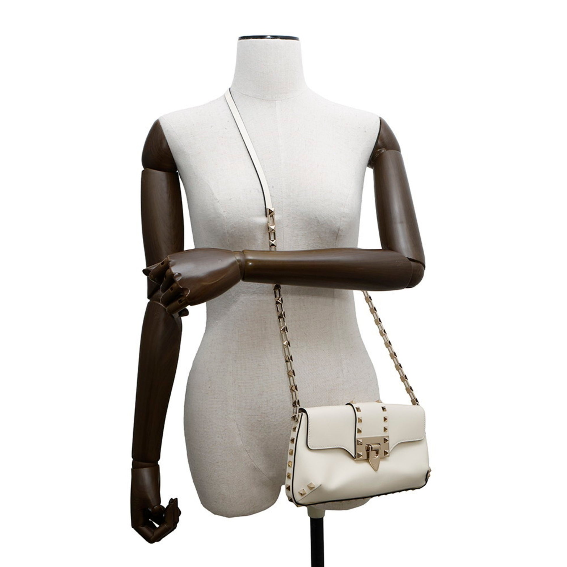 Valentino Garavani Rockstud Leather Shoulder Bag in White