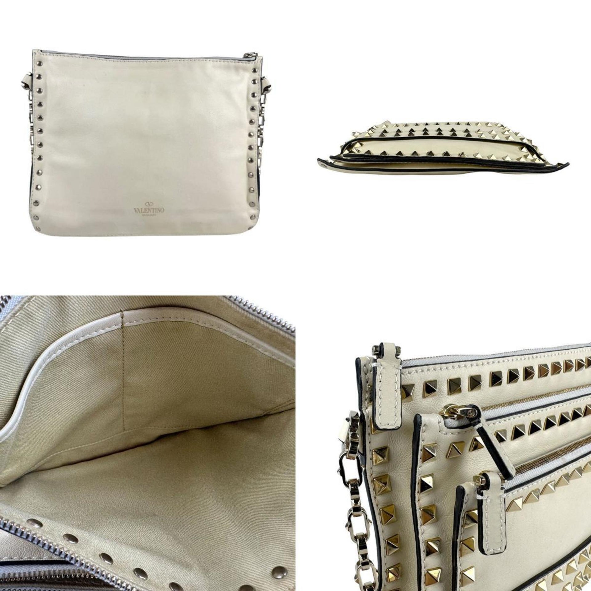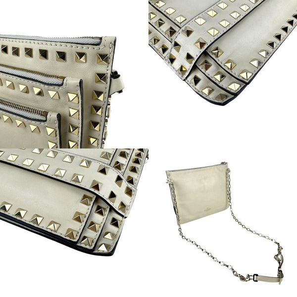 Valentino Garavani Rockstud Shoulder Bag in Leather, Metal, Off-White, and Gold (Z6963)