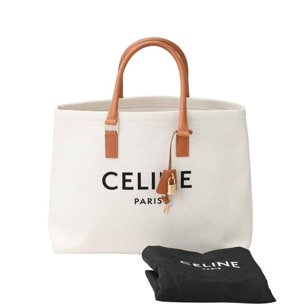 Celine Horizontal Cabas Canvas Tote Bag 190062BNZ White