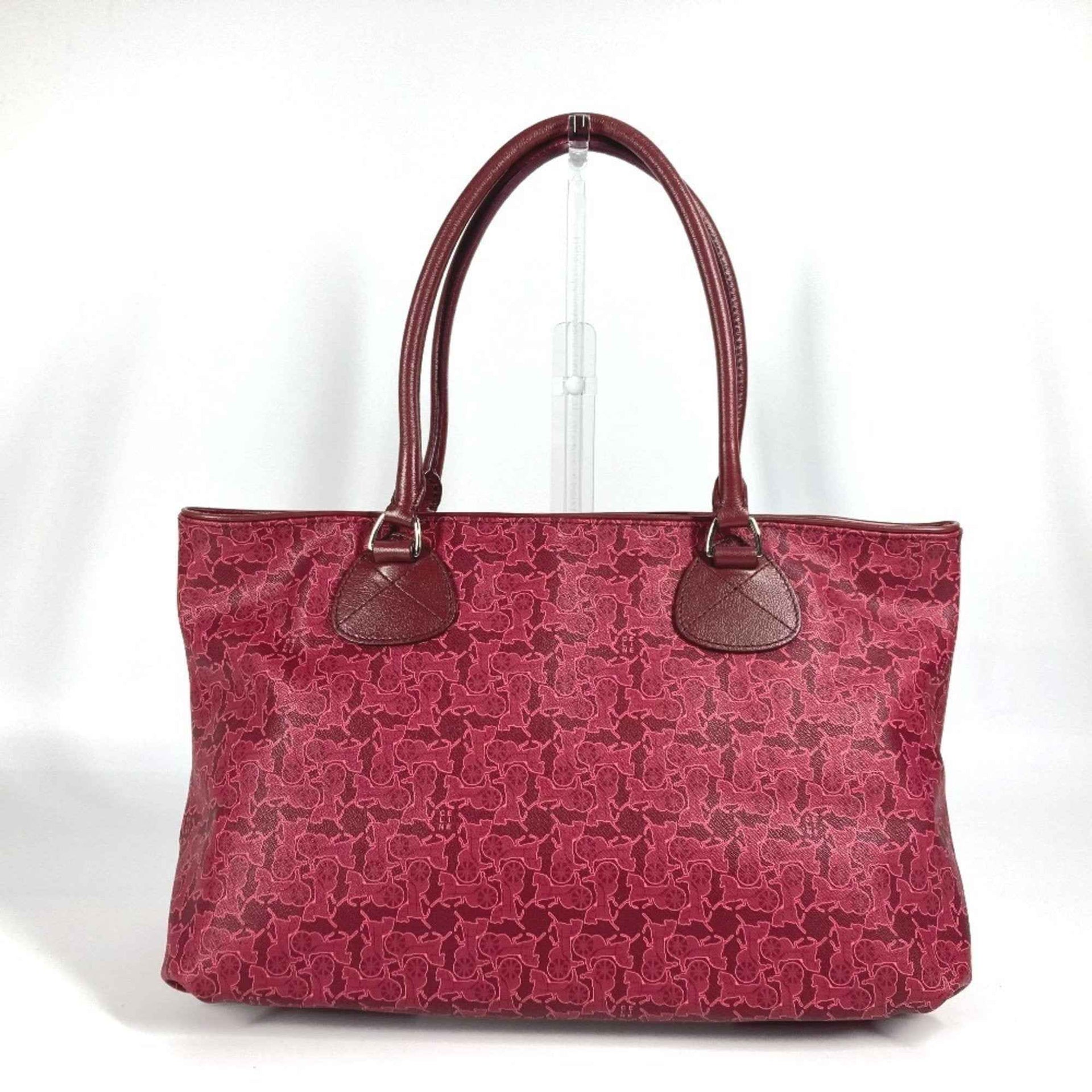 CELINE Logo Sulky Tote Bag Shoulder PVC/Leather Women\'s Red
