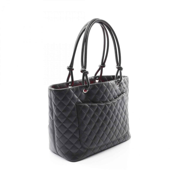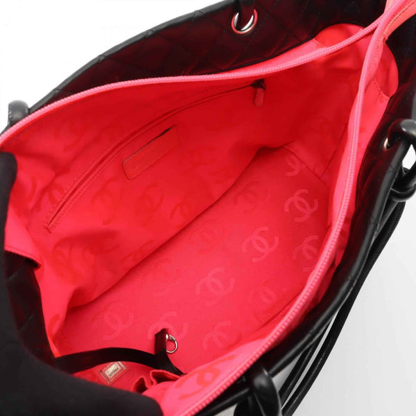 CHANEL Cambon Line Large Tote Bag, Lambskin Leather, Women\'s, Black and White