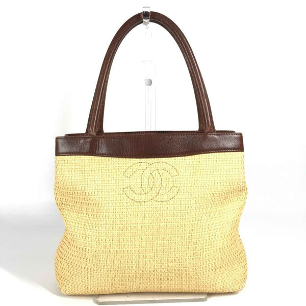 CHANEL CC Coco Mark Logo Tote Bag Shoulder Raffia/Leather Women\'s Beige
